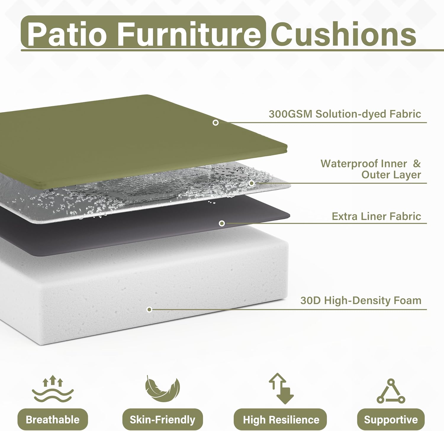 - π WEATHERPROOF - The Patio Furniture Chair Cushion is made of double-layer waterproof coated fabric that is waterproof on all sides, keeping the rain out and keeping the foam dry and tidy. Even in bad weather, it looks brand new with just a little care from you!