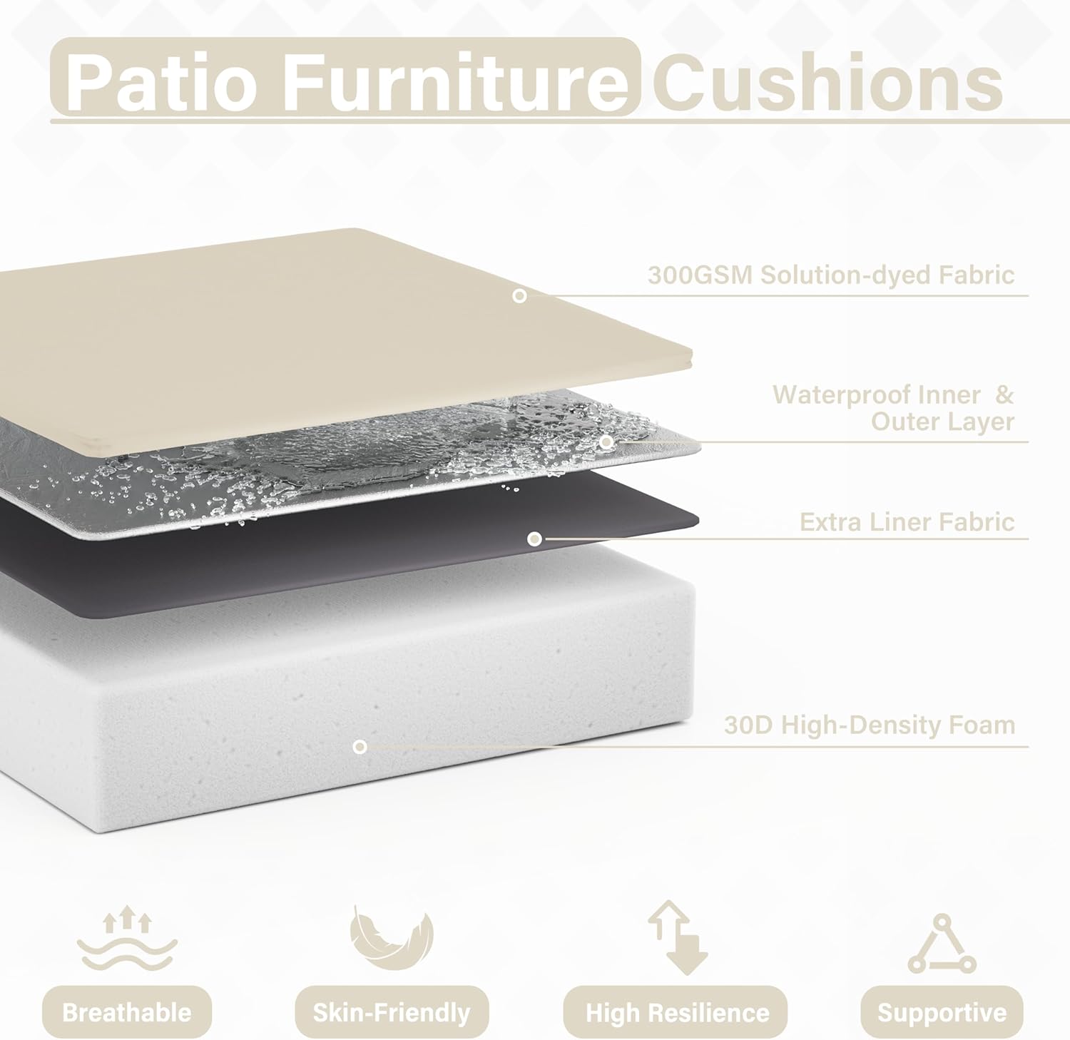 - π WEATHERPROOF - The Patio Furniture Chair Cushion is made of double-layer waterproof coated fabric that is waterproof on all sides, keeping the rain out and keeping the foam dry and tidy. Even in bad weather, it looks brand new with just a little care from you!