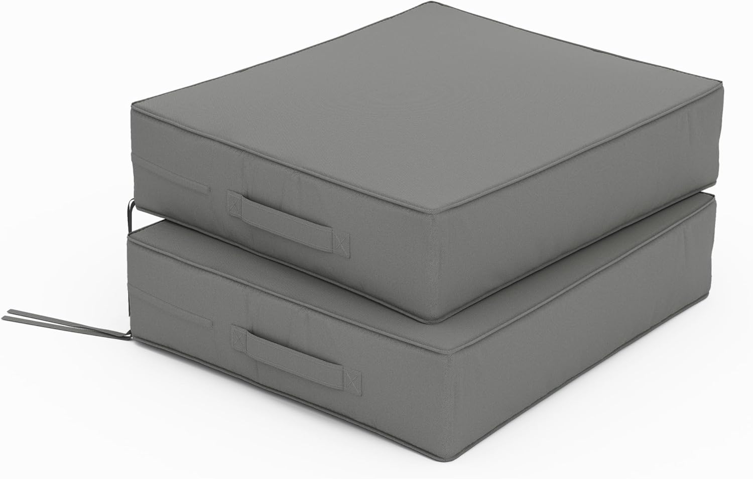 Patio Chair Cushions 18.5 X 16 X 4 Inch Waterproof Outdoor Seat Cushions for Patio Furniture, Outdoor Sofa Couch Pads with Ties & Handle, Set of 2, Light Grey