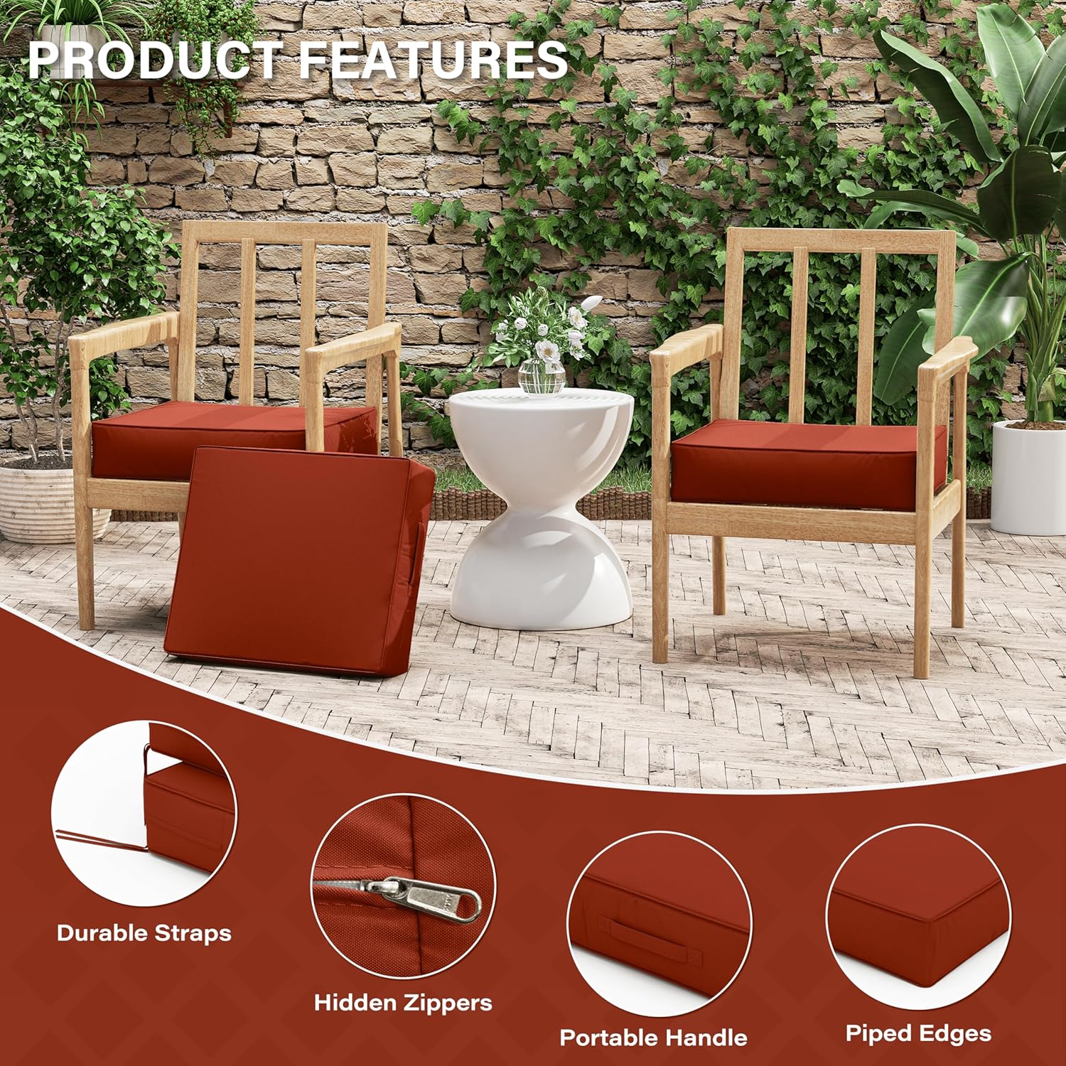Patio Chair Cushions 18.5 X 16 X 4 Inch Waterproof Outdoor Seat Cushions for Patio Furniture, Outdoor Sofa Couch Pads with Ties & Handle, Set of 2, Terra Red