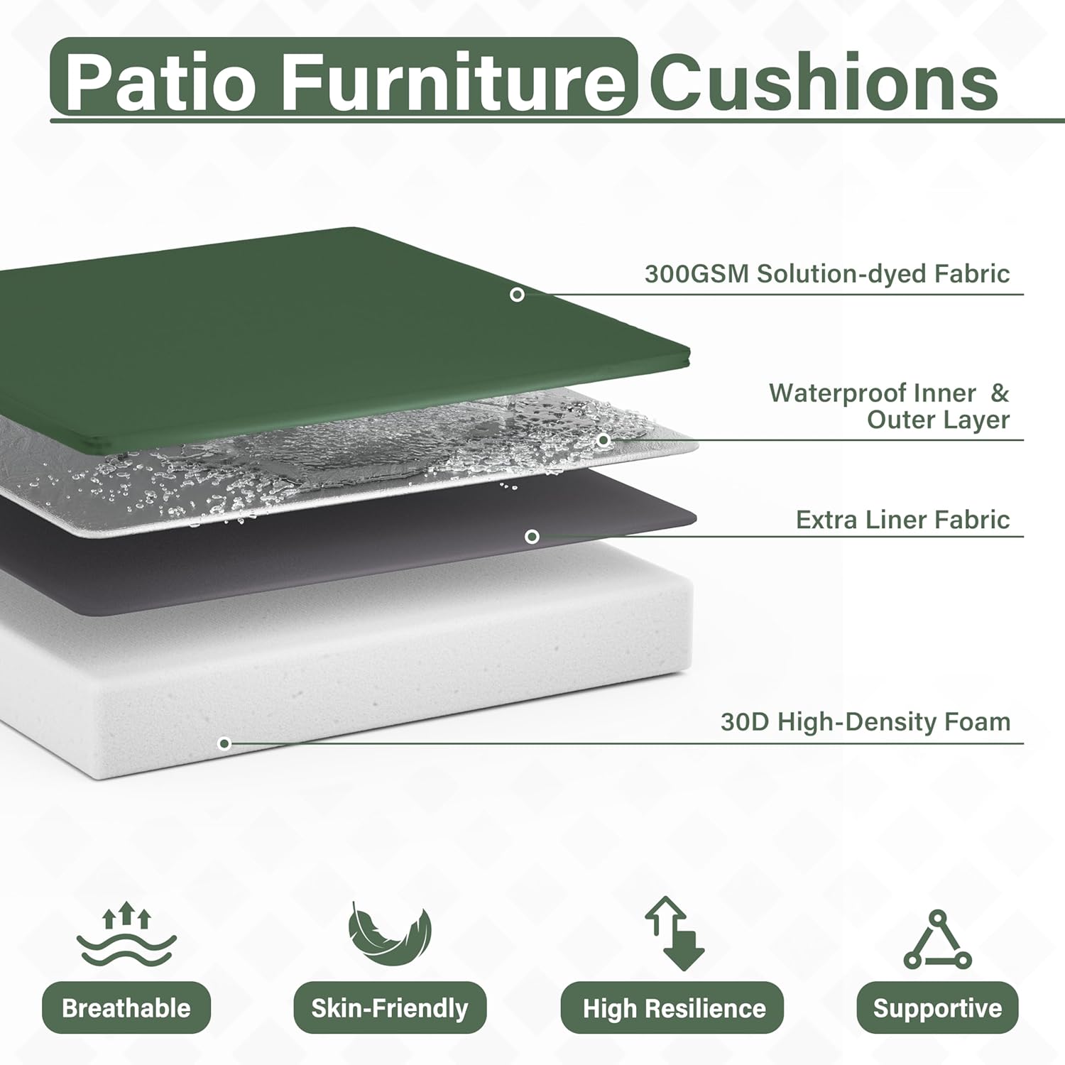 - π WEATHERPROOF - The Patio Furniture Chair Cushion is made of double-layer waterproof coated fabric that is waterproof on all sides, keeping the rain out and keeping the foam dry and tidy. Even in bad weather, it looks brand new with just a little care from you!