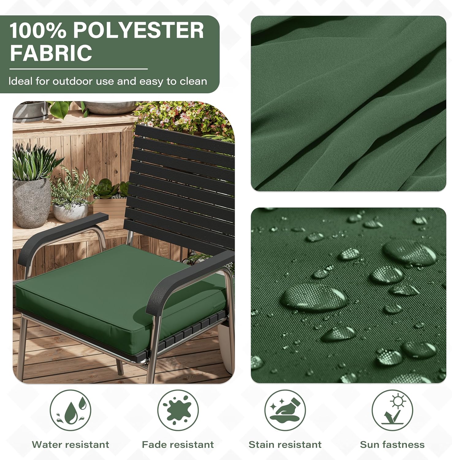 Patio Chair Cushions 17 X 16 X 3 Inch Waterproof Outdoor Seat Cushions for Patio Furniture, Outdoor Sofa Couch Pads with Ties & Handle, Set of 2, Green