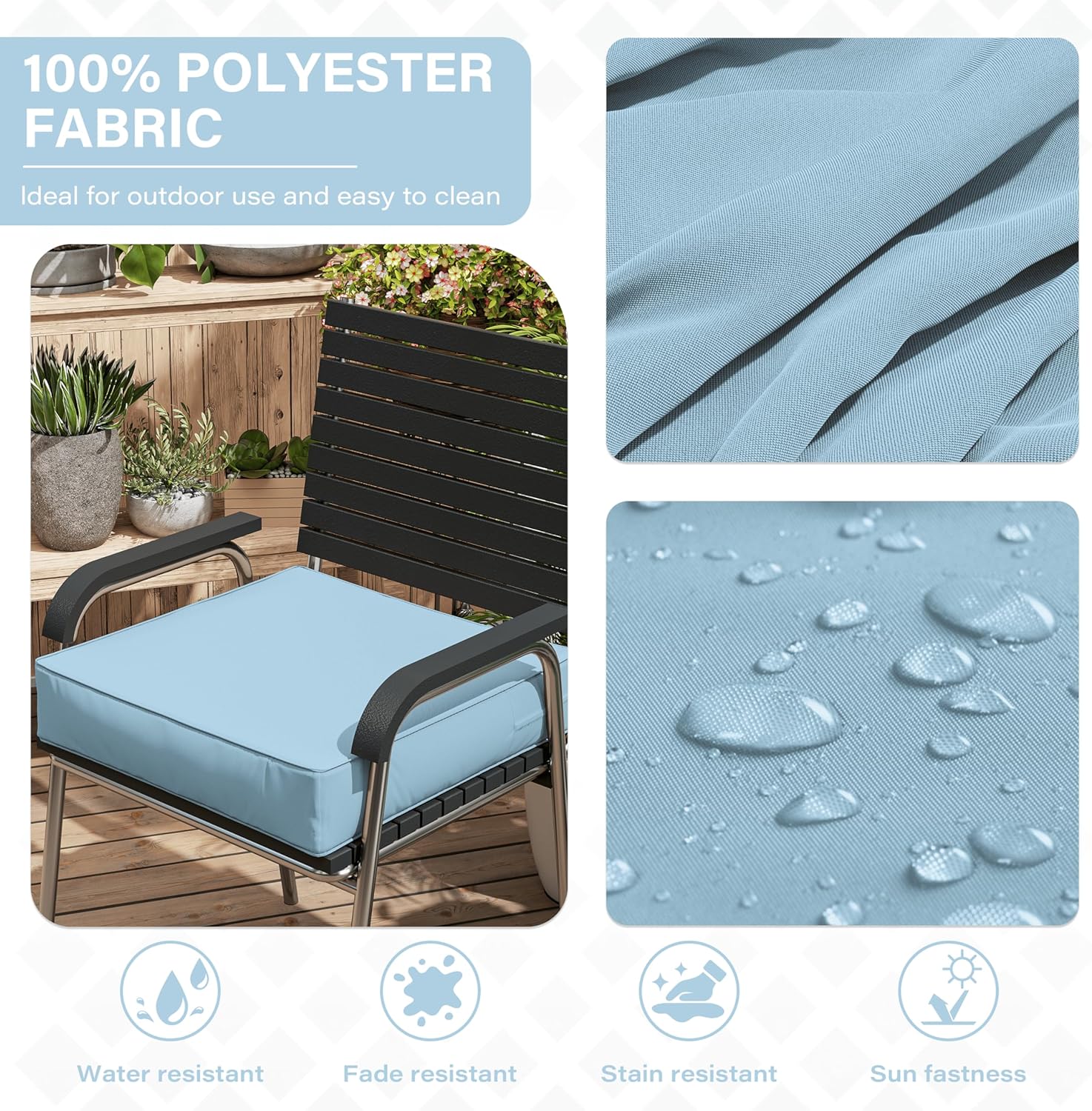Patio Chair Cushions 24 X 24 X 5 Inch Waterproof Outdoor Seat Cushions for Patio Furniture, Outdoor Sofa Couch Pads with Ties & Handle, Set of 2, Light Blue