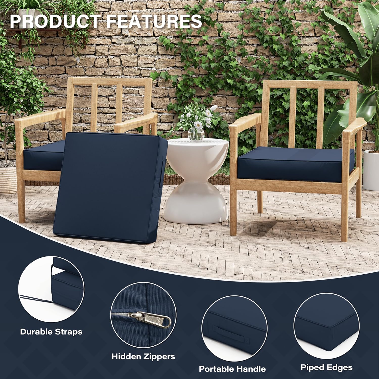 Patio Chair Cushions 22 X 22 X 4 Inch Waterproof Outdoor Seat Cushions for Patio Furniture, Outdoor Sofa Couch Pads with Ties & Handle, Set of 2, Navy Blue