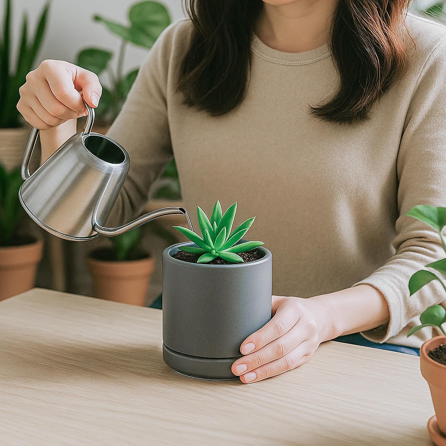 D'vine Dev Set of 2 Plants Pots, 3.5 Inch Ceramic Planter Pot for Plants with Drainage Hole and Saucer, Speckled Grey, 94-V-A-3