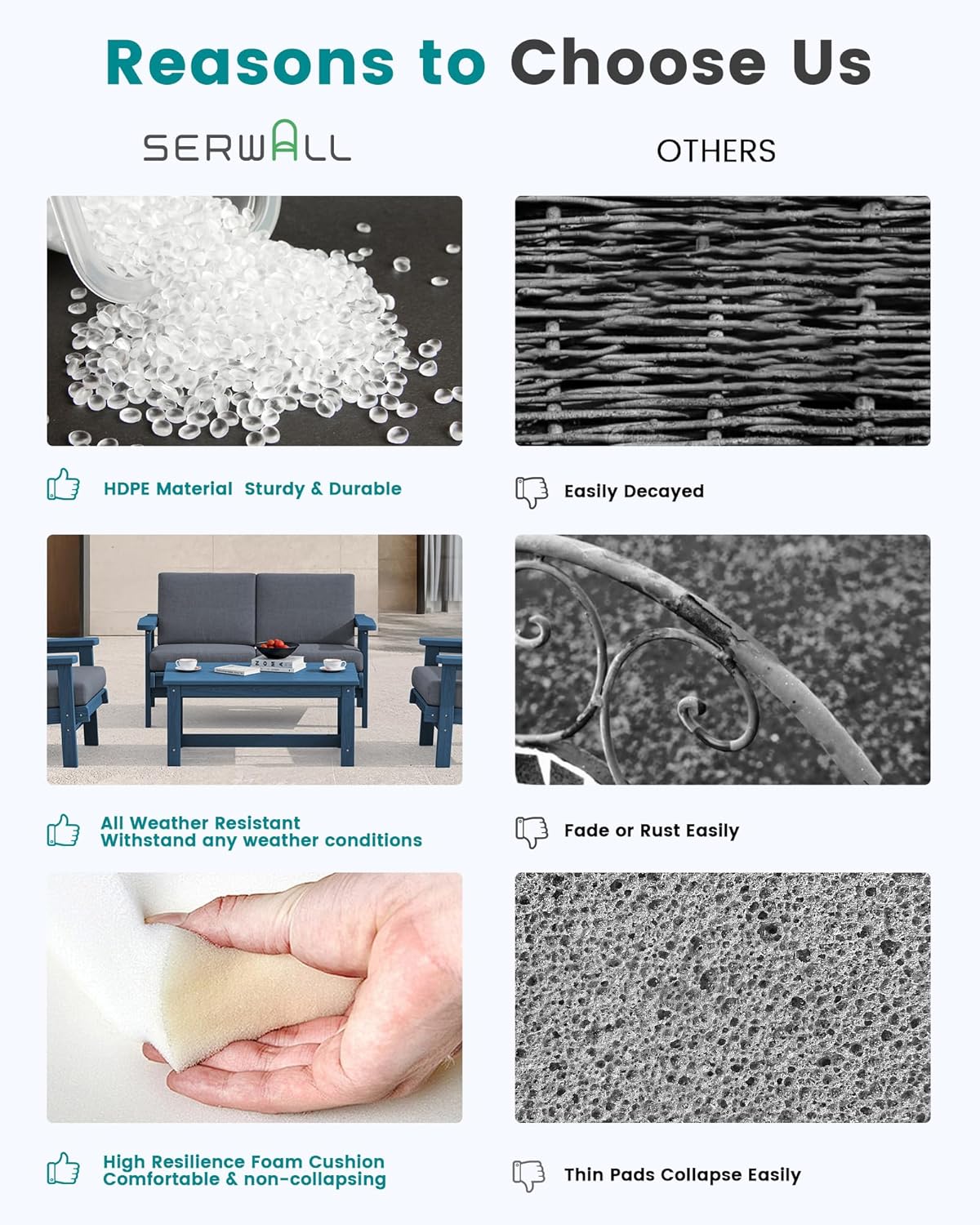 - After-sales Support: We want our customers to be 100% satisfied with serwall outdoor furniture set - you can always come to us for any product questions and product care, we are committed to your satisfaction.
