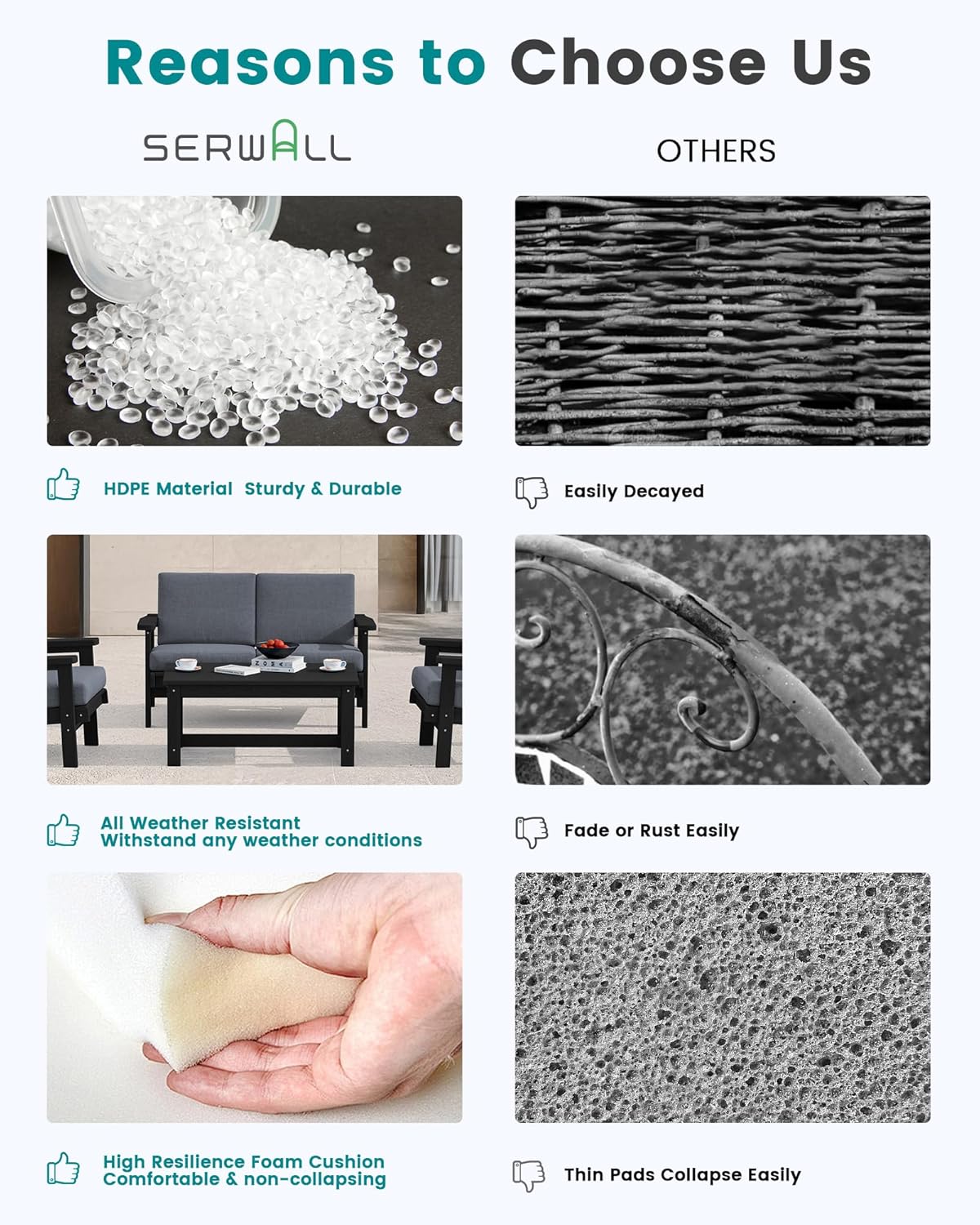 - After-sales Support: We want our customers to be 100% satisfied with serwall outdoor furniture set - you can always come to us for any product questions and product care, we are committed to your satisfaction.