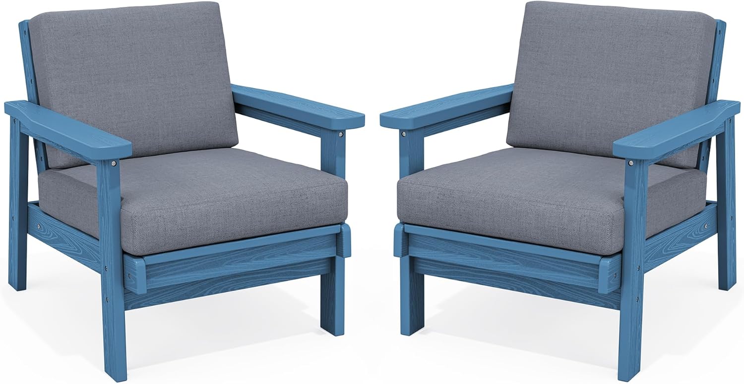 SERWALL HDPE Outdoor Couch Set of 2, Blue Frame and Grey Cushion