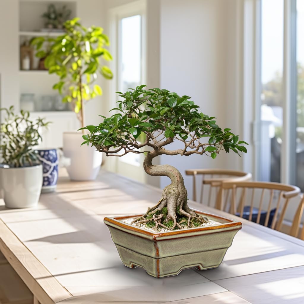 - Premium Glazed Ceramic Bonsai Tree Pots for Year-Round Beauty. Crafted from high-quality glazed ceramic, these bonsai pots feature a timeless light brown finish that complements any decor style. Perfect for homes, offices, patios, or gardens, bonsai planters make a thoughtful gift for plant lovers who appreciate lasting quality. Watch how the glazed bonsai pots catch the sunlight—each day reveals a new subtle shimmer, turning your plants into living art.
