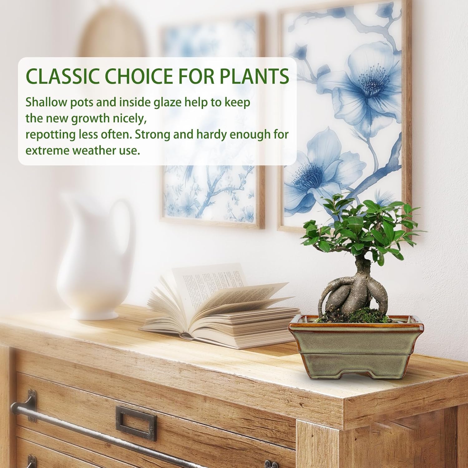 - Versatile Narrow Rectangular Design. Designed for flexible placement, these shallow bonsai pots planters fit seamlessly on windowsills, desks, shelves, or coffee tables indoors, or in sunny garden and patio spots outdoors. The compact shape of ceramic bonsai pots is ideal for bonsai training or sun-loving plants. Finally, a rectangular bonsai pot planter that adapts to your life—whether you're curating a cozy reading nook or a sunny patio oasis.