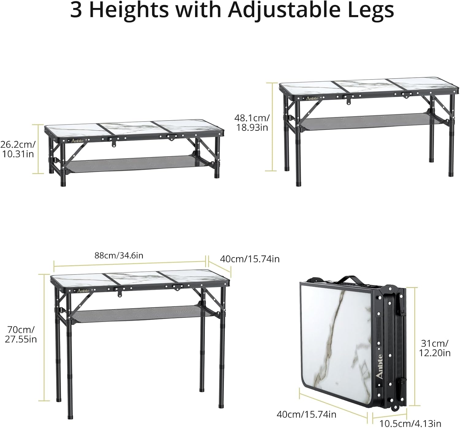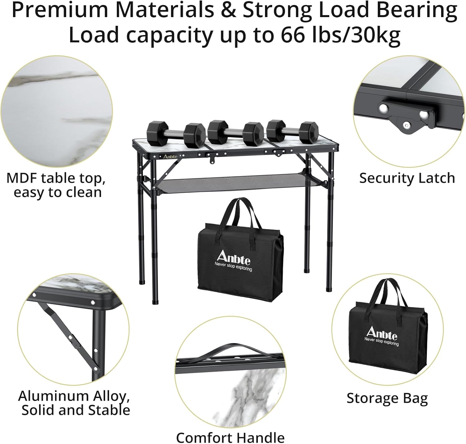 - 【Premium Quality Materials, Strong Load-Bearing】 Anbte portable folding table's frame is made of thickened aluminum alloy and can hold up to 66 pounds, making it extremely stable. It comes with a U-shaped frame and buckles for added stability and durability