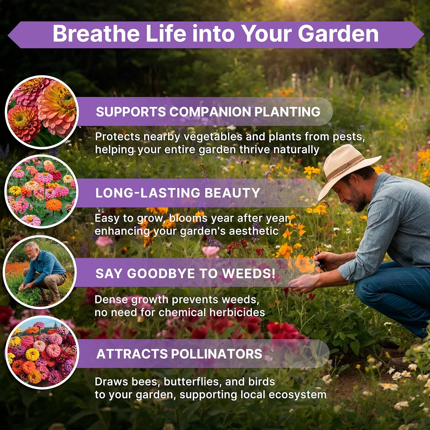 - US Sourced Premium Zinnia Seeds - We are sourcing our seeds only from the most trusted and sustainable domestic seed suppliers and farmers. We proudly test and package them in our Florida Boutique Family-Owned Facility to provide you with the best quality. Our zinnia seeds for planting flowers undergo rigorous testing with a 90%+ germination rate. Sealed to last for up to 2 years, you can trust the freshness and viability of our flower seeds.