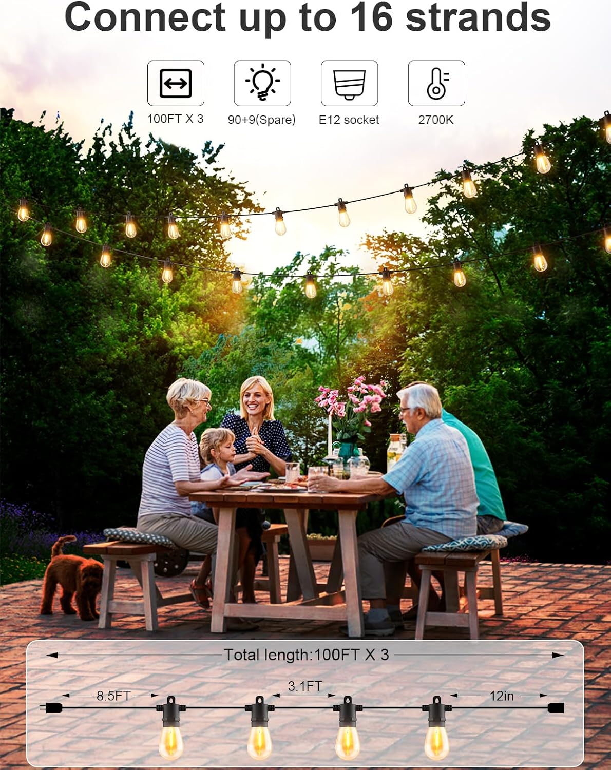 - Dimmable and Long Life: These 300 ft cafe string lights are compatible with most dimmers (not included) to create the right ambiance for you. Each shatterproof bulb works individually, If one light bulb goes out, it will not affect the rest bulbs