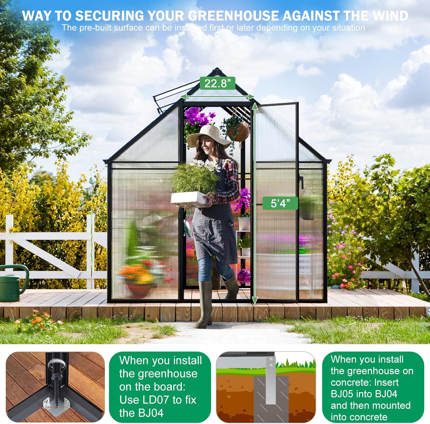 - Sturdy Frame: Our greenhouse kit boasts a robust rust-resistant aluminum frame designed to withstand various weather conditions. 2 skilled enthusiasts can assemble this greenhouse kit within just 4-6 hours. Introducing patented technology, Easy assembly, saving you 50% of your time. Gone are the days of tedious setups. With a simple push and locking screw, our Quick Connect ensures a reliable, secure, and swift link-up. It can also support snow loads of up to 20PSF