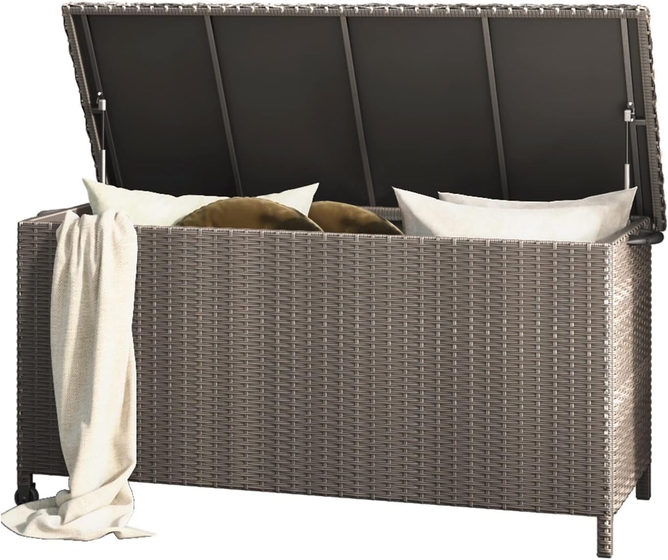Grand patio 108 Gallon Deck Storage Box Indoor Outdoor Wicker Bin for Patio Furniture Cushions Garden Tools Pool Accessories, Greige