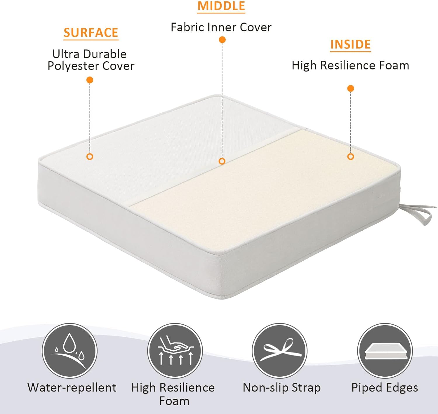 - 【Non-slip Ties and Piped Edge】 The two non-slip ties can be fastened to your furniture to keep the outdoor cushion in place. Some seams are finished with piping, which reinforces the edges and makes the outdoor furniture cushion more stylish.