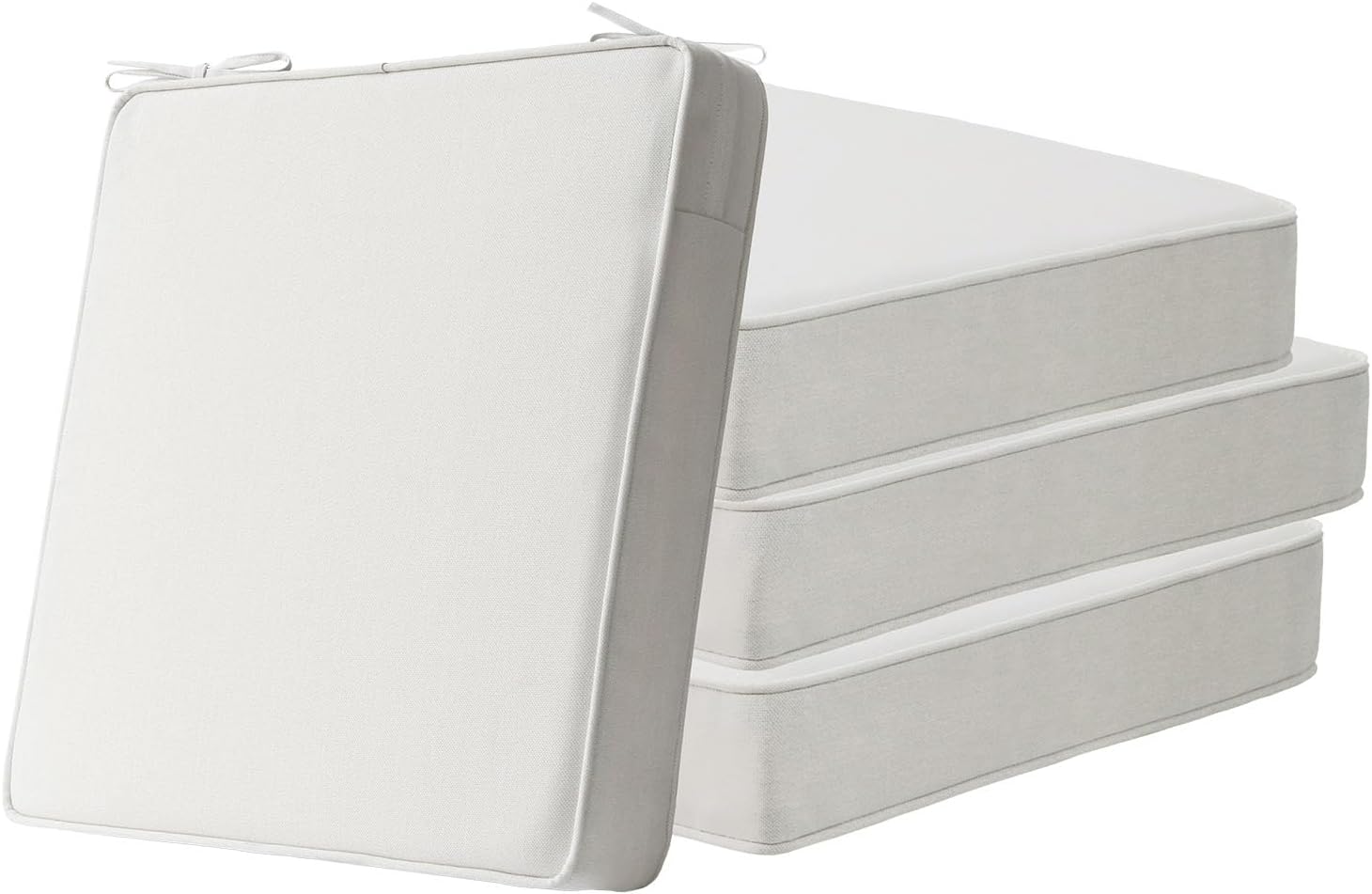 Square Corner Seat Cushions, 19" x 19" x 3", Set of 4, Indoor Outdoor Water Repellent Universal Chair Pads with Ties for Patio Furniture, Garden Deck Dining Chairs, Linen