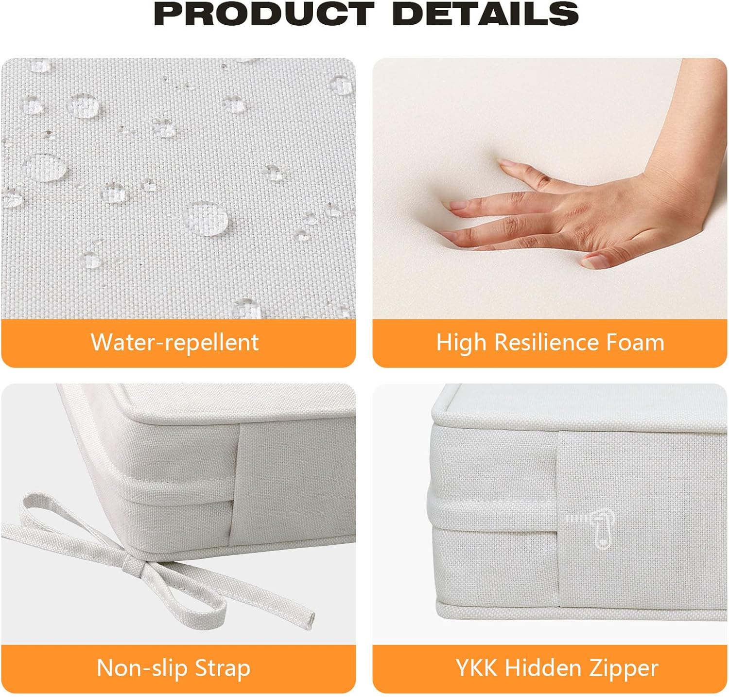 - 【Water Repellent and Removable Cover】 Made of eco-friendly, sturdy polyester fabric with a water repellent coating, the cushion cover is UV-protected and fade-resistant, providing you with a comfortable outdoor experience. The removable cover features a covered YKK zipper for easy cleaning and replacement.
