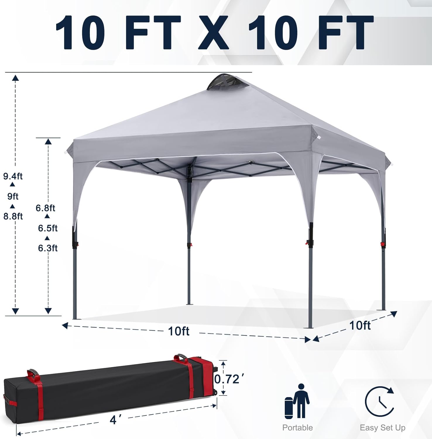 - 【Real Shade, UPF 50+】:Stable base with 10'x10' footprint and 10'x10' at top, which provides 100 sq. ft. of shade. Thickened 300D silver-coated Oxford fabric, blocking 99% of harmful UV rays, waterproof, flame retardant. Cools and protects 8 to 10 people, perfect for a variety of outdoor events from sports games to farmers' markets.