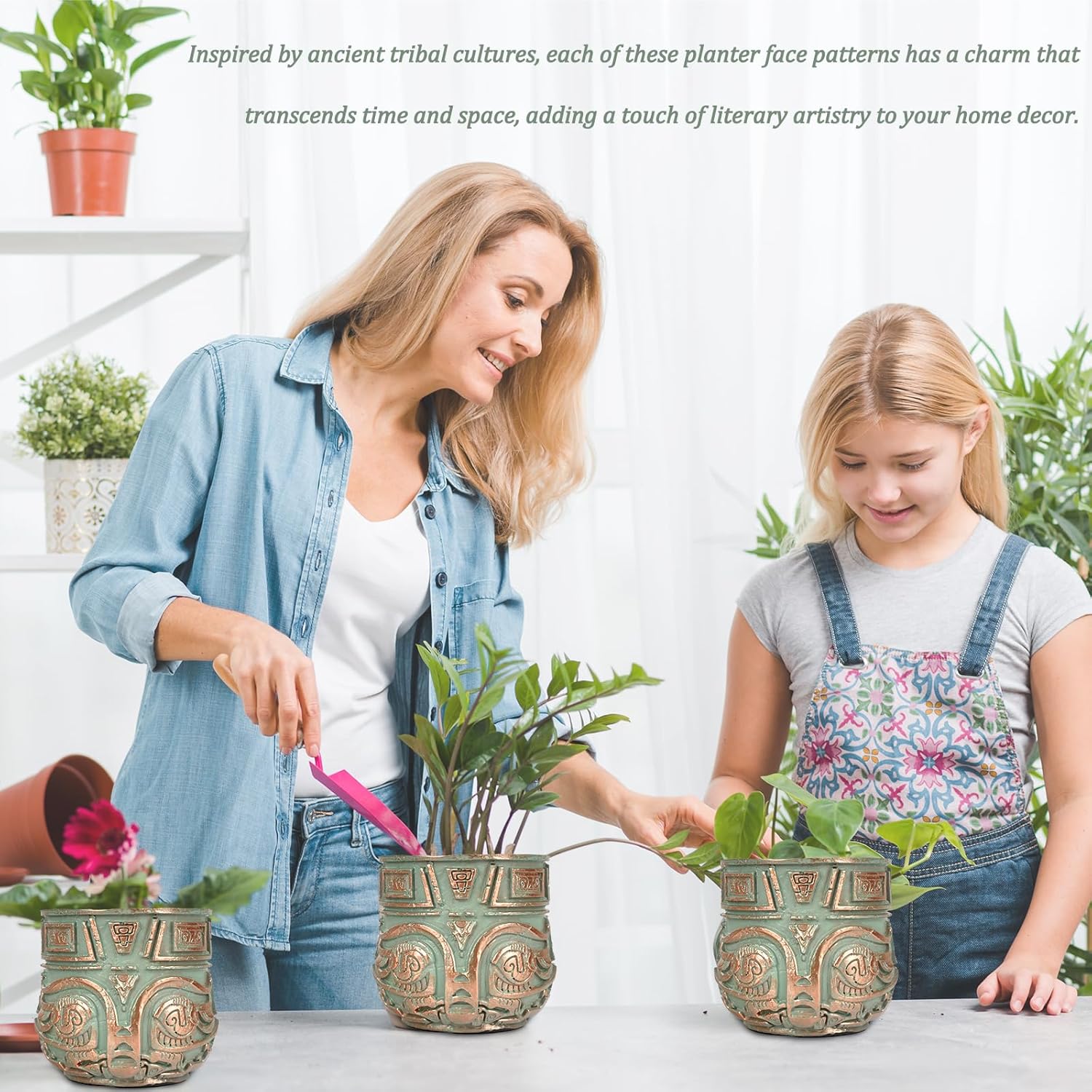 - 【Unique Face Flower Pot】Our tribal face planters transport you to a world of mystery. Inspired by ancient tribal cultures, each of these planter face patterns has a charm that transcends time and space, adding a touch of literary artistry to your home decor.
