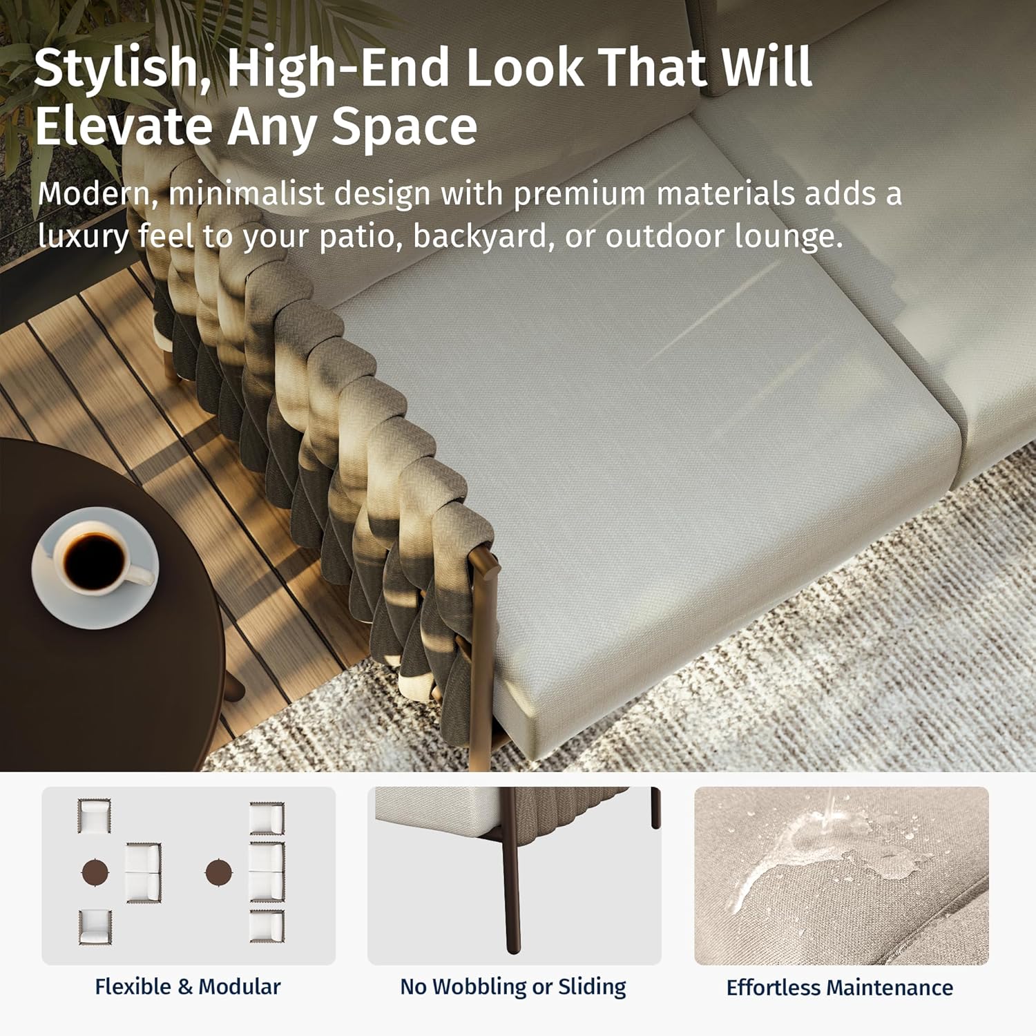 - UNMATCHED OUTDOOR DURABILITY: Crafted with a heavy-duty steel frame and durable Olefin rope, this 3-seater sofa resists rust, fading, and weather damage. The waterproof, breathable cushion covers ensure all-season comfort, making it perfect for outdoor use year after year