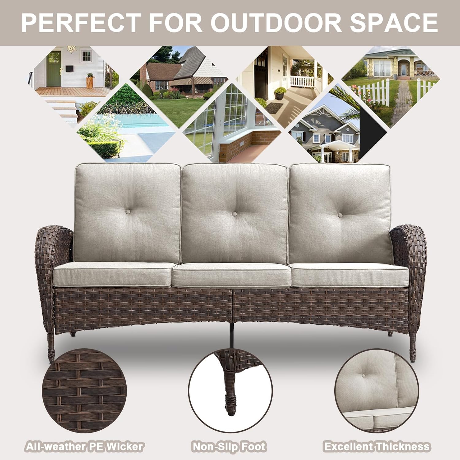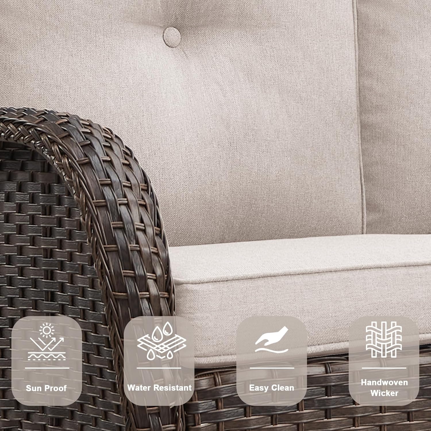 6 Piece Patio Conversation Sets - Wicker Patio Furniture Sets with Outdoor Swivel Rocker Chairs Outdoor Couch Perfect for Deck Patio Backyard, Brown Wicker Beige Cushion