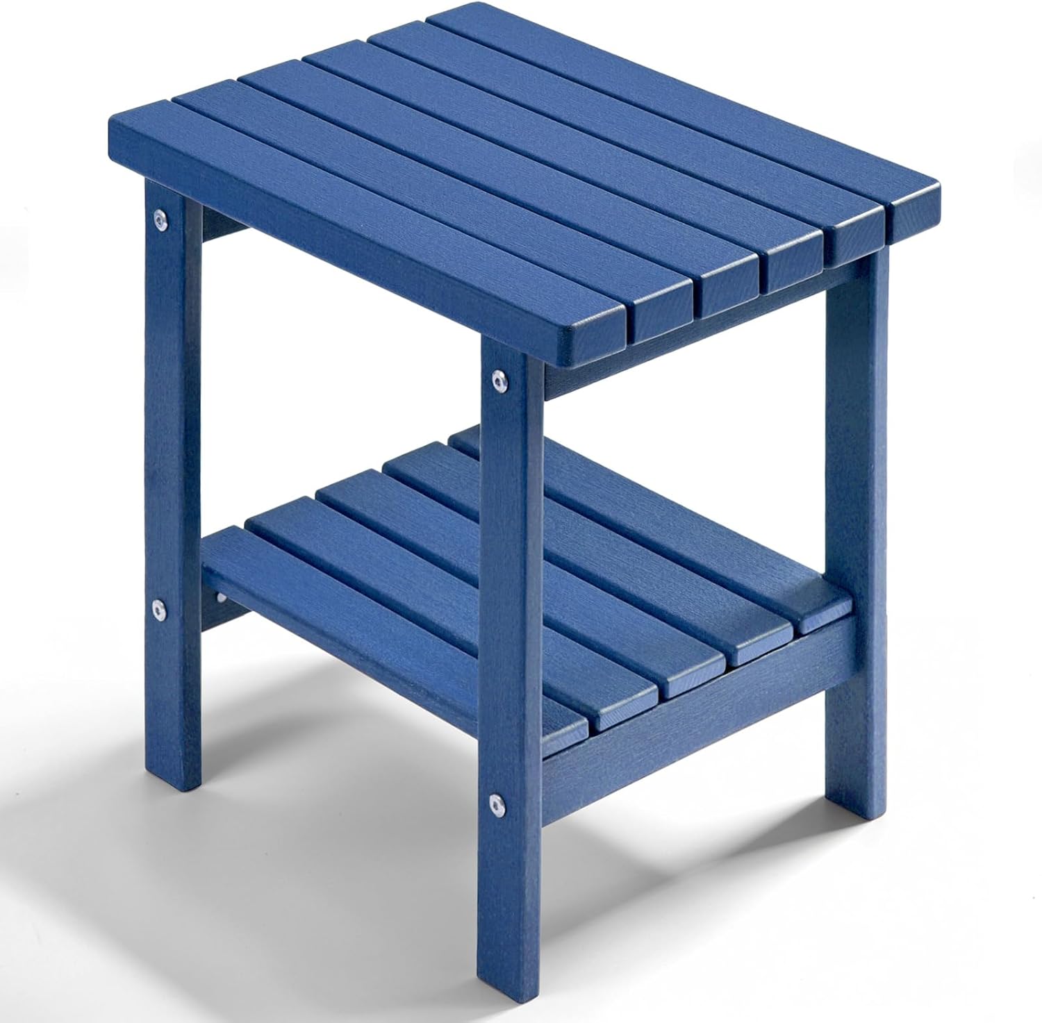 PASAMIC 2-Tier Adirondack Square Side Table, 17" HDPE Outdoor Side Tables, Weather Resistant End Table for Patio, Backyard, Pool, Indoor Companion, Beach, Easy Maintenance (Navy Blue)