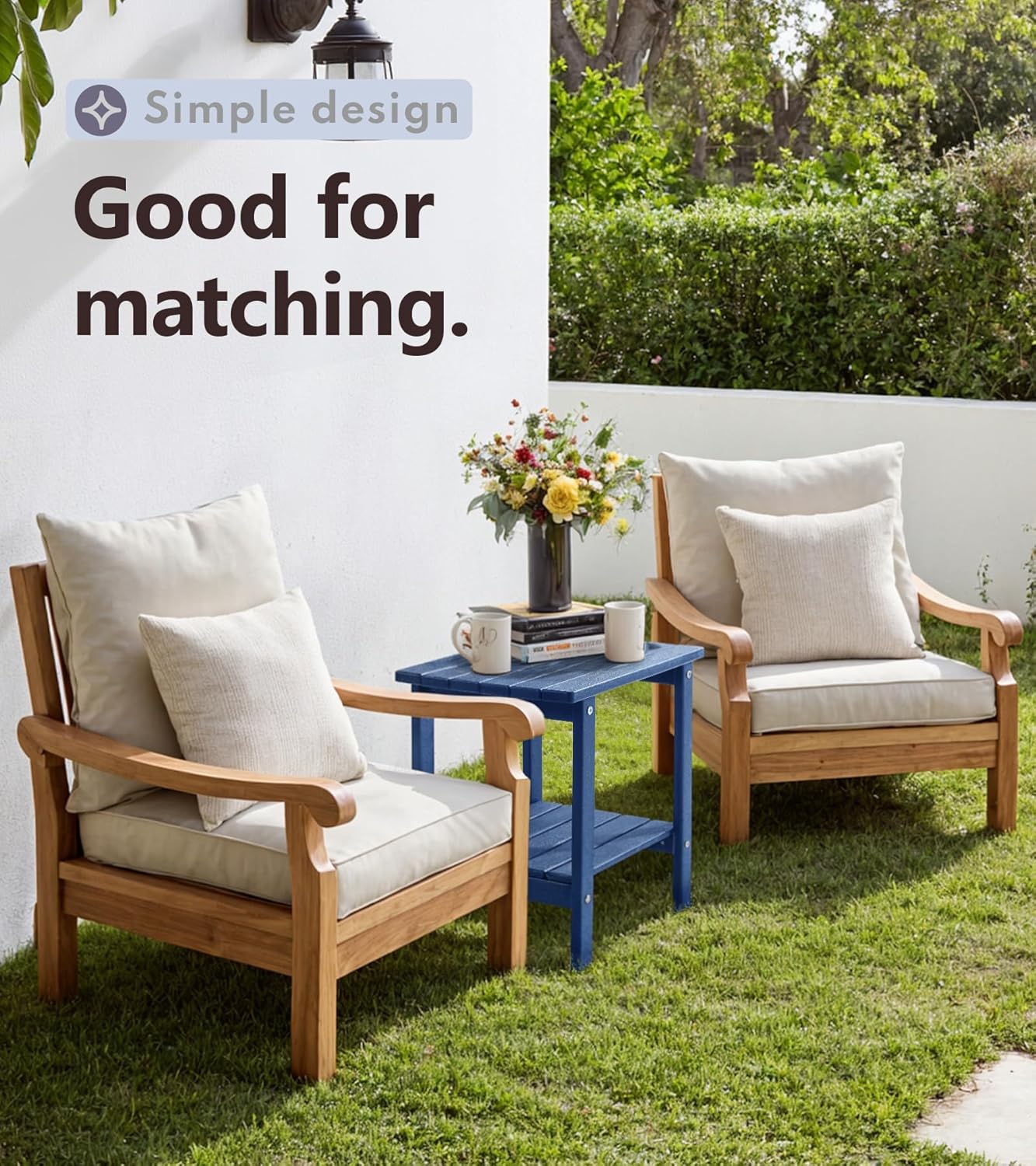 - 【Widely Application for Indoor & Outdoor】Choose from a variety of trendy colors to match your indoor and outdoor space. The outdoor end table is perfect to complement adirondack chairs, patio chairs, and rocking chairs in patio, garden, lawn, pool and balcony. The outdoor small table is also suitable for the living room, bedroom, bathroom and kitchen.