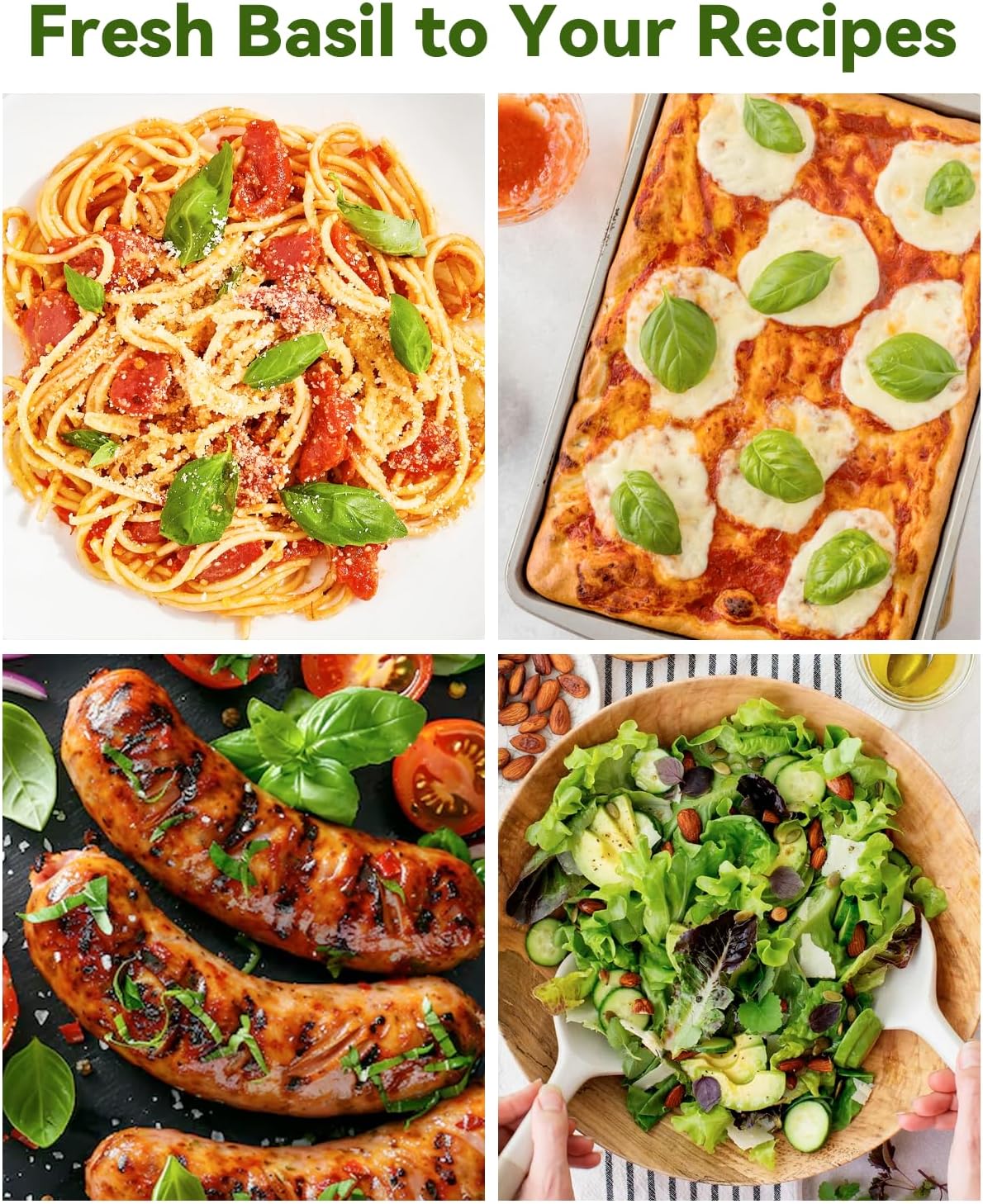 - ALL YOUR NEEDS TO START GARDENING - The all-in-one seed pod kit includes everything you'll need for an indoor herb garden: 2 types of mixed heirloom seeds(Common (Scentific Name): Genovese Basil(Ocimum basilicum) & Purple Basil(Ocimum basilicum ‘Purple Ruffles’)), 8 grow sponges, 8 grow baskets, 8 grow domes, 8 foil stickers, and A&B plant food