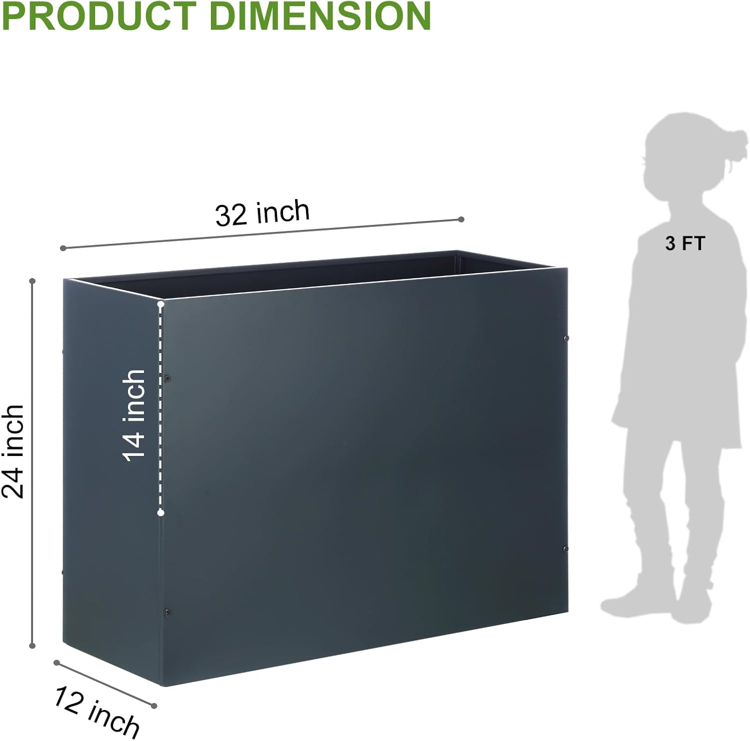 BAYN Metal Rectangular Planter Box Tall Planters for Outdoor Plants Modern Heavy Duty with Drainage Holes for Outside Indoor Patio Deck - Grey, 32”x 12”x 24”