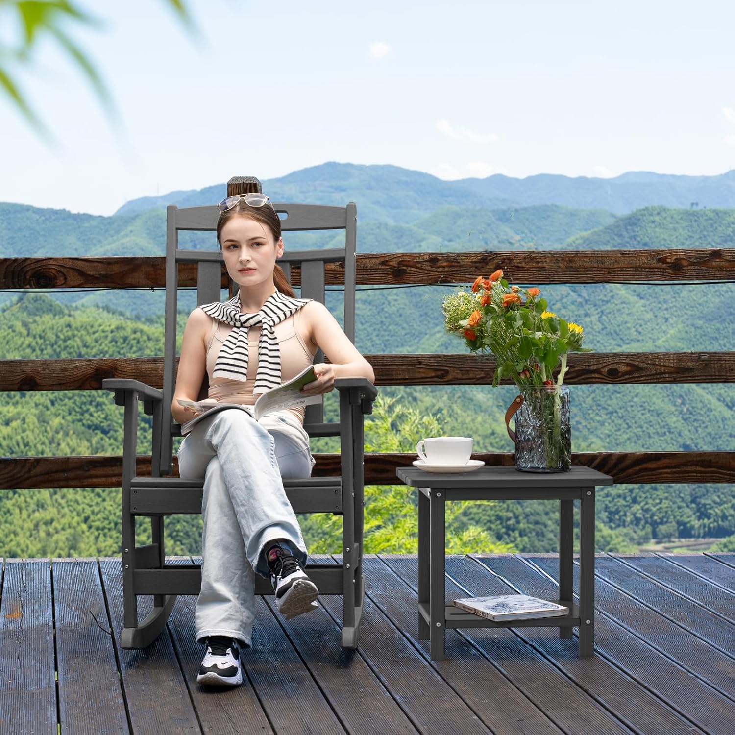 Adirondack Square Side Table - 18.4" Large Panel HDPE Outdoor End Table - Weatherproof, Rustproof & Low Maintenance for Patio, Lawn, Pool, Indoor Use (Grey)