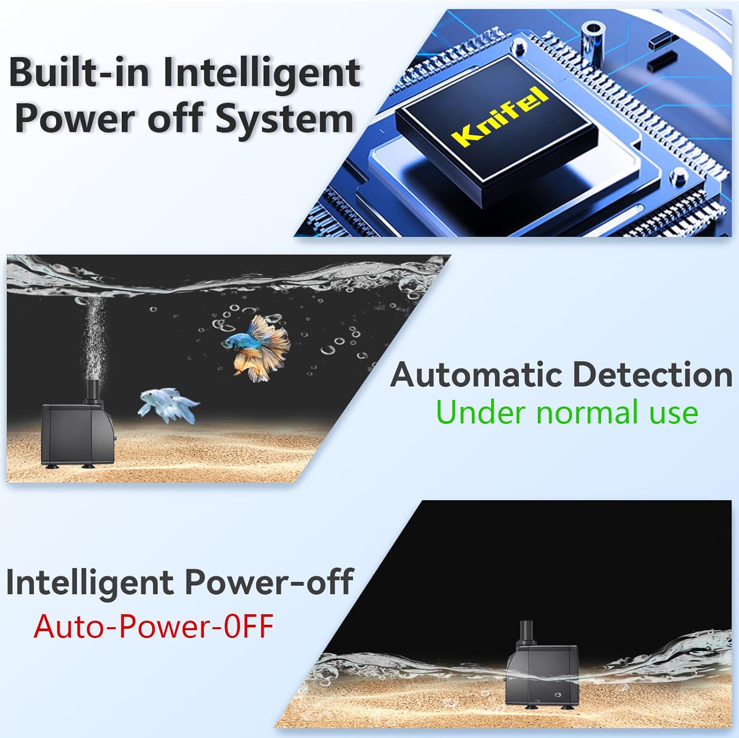 - 【AUTO-SHUT-OFF】This fountain pump has atuo shut off function, it will shut off the power when there is no water and restart after adding water, that can protect this water feature pump from burn out, ensure the pumps service life.
