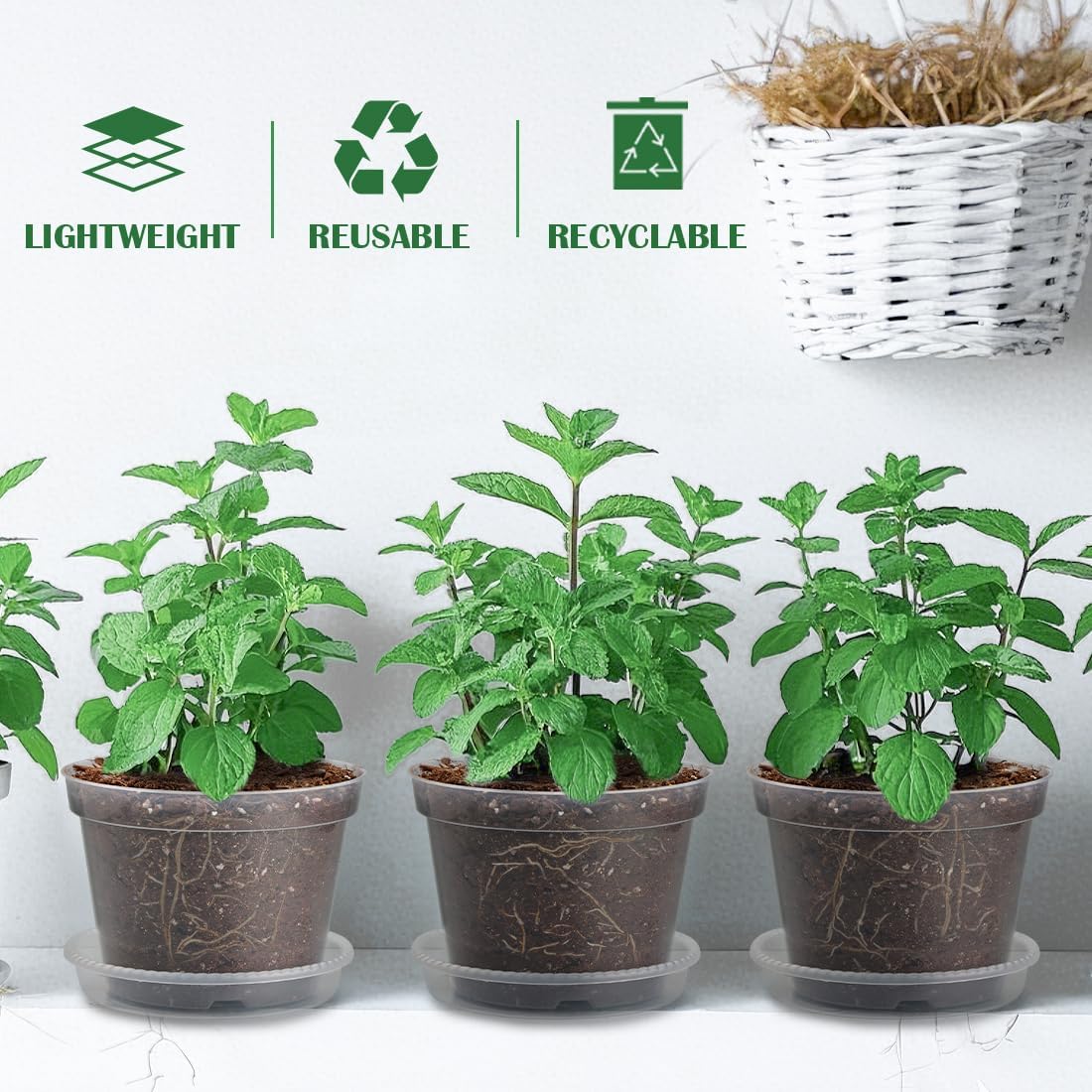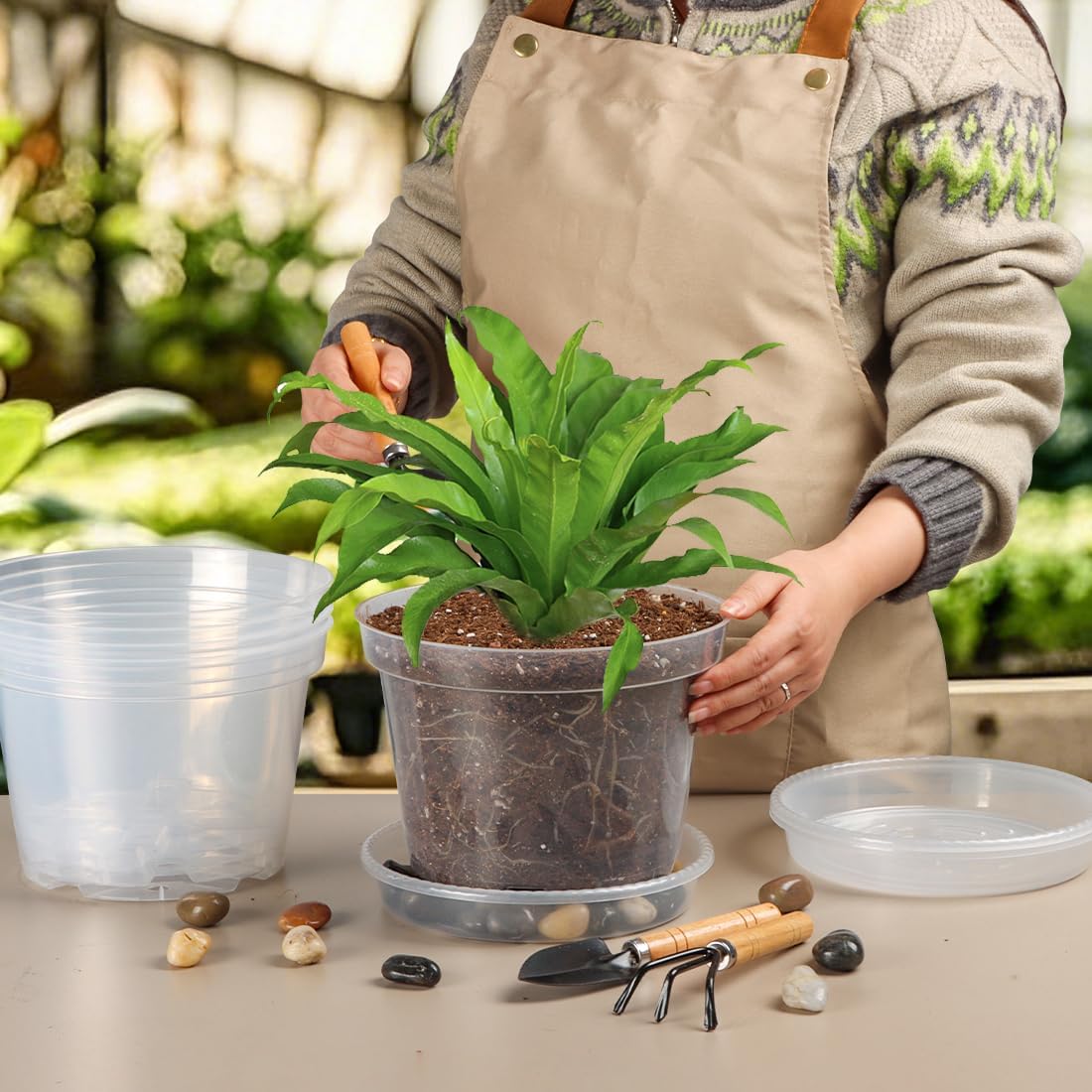 - Great for Home Gardener: You will get 7 pack 8 inch pots, and matching 7 pack plant saucer. Clear pots are great for repotting plants for using indoor or outdoor garden. Clear nursery pots can be adapted to the growth of different plants, from seed starter pots to large plant nursery pots, you can witness the growth of plants.