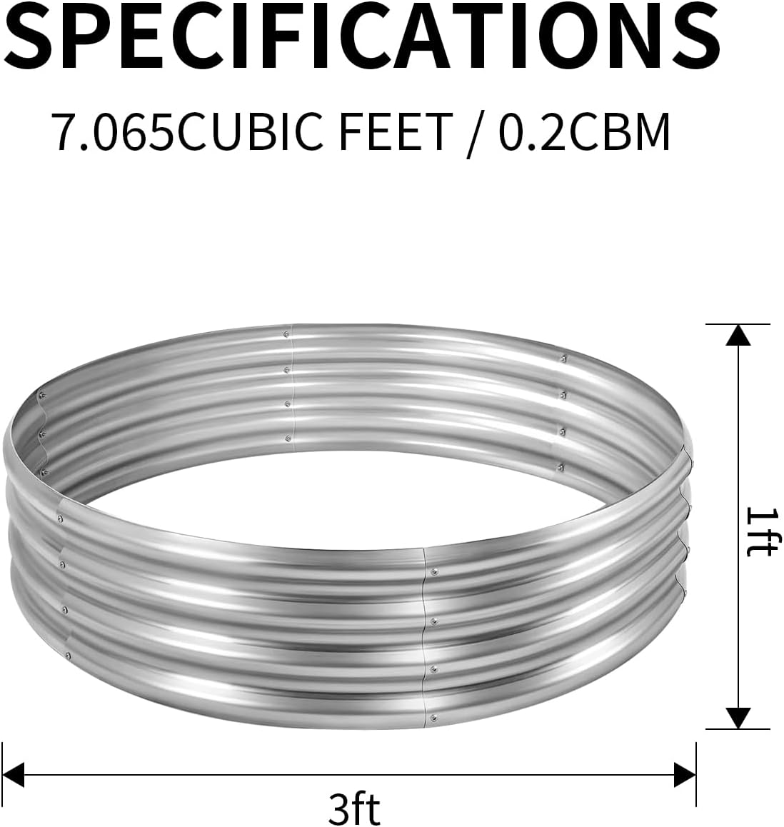 Land Guard 3×3×1ft Galvanized Raised Garden Bed Kit, Round Galvanized Planter Raised Garden Boxes Outdoor, Large Metal Raised Garden Beds for Vegetables, Silver