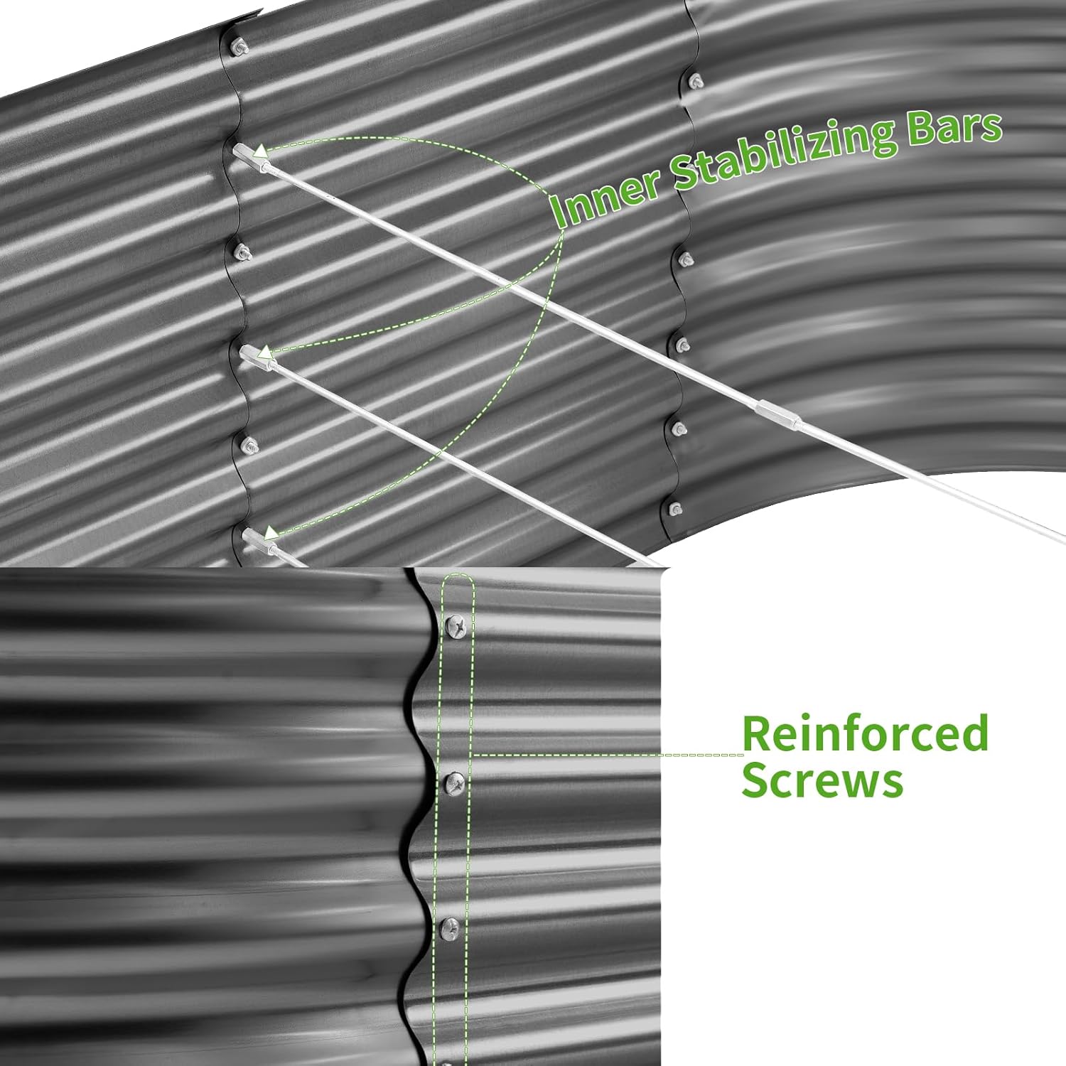 - Upgrade Quality: These raised garden beds outdoor are constructed from Q195 galvanized metal sheets with a double-layer anti-corrosion galvanizing structure, offering you a long-lasting solution to gardening needs. Besides, the joints are designed for superior strength, preventing looseness and deformation.