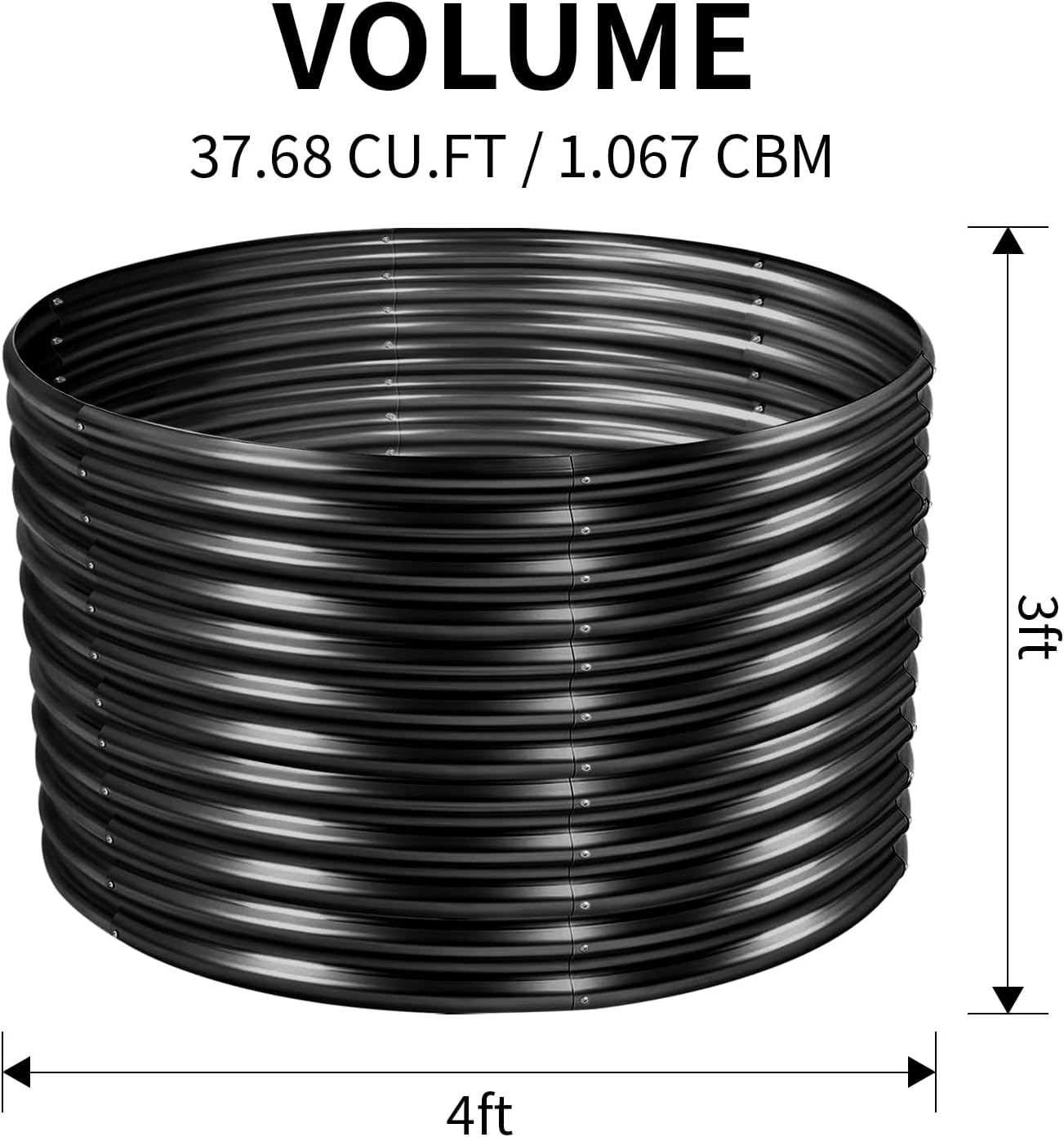 Land Guard 4×4×3ft Galvanized Raised Garden Bed Kit, Round Galvanized Planter Raised Garden Boxes Outdoor, Large Metal Raised Garden Beds for Vegetables, Grey