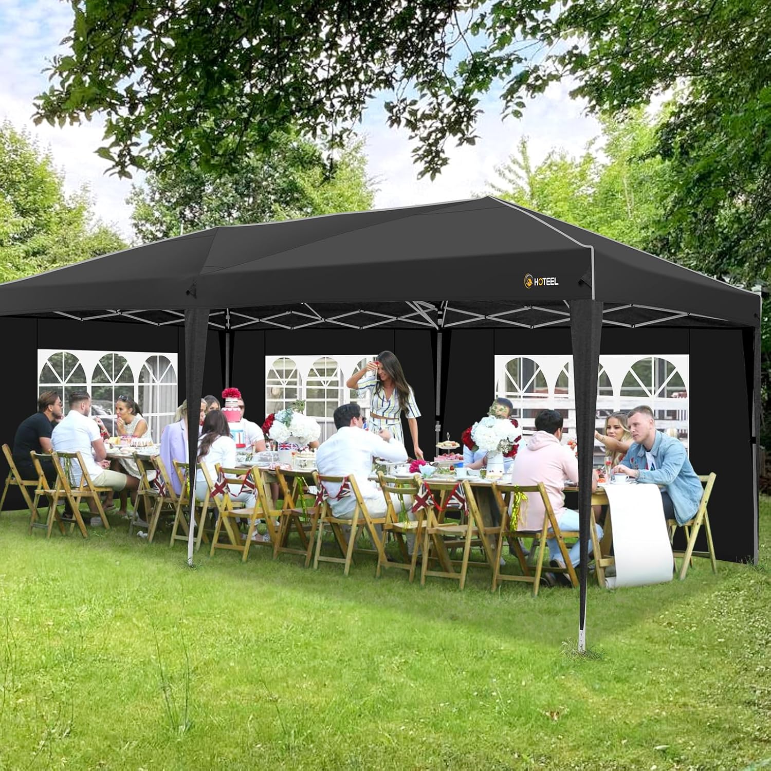 HOTEEL 10x20 Pop up Canopy with 6 Sidewalls, One Push Instant Setup Outdoor Canopy Tent with Reinforce Rod, Weight Bag, for Parties, Events, Black