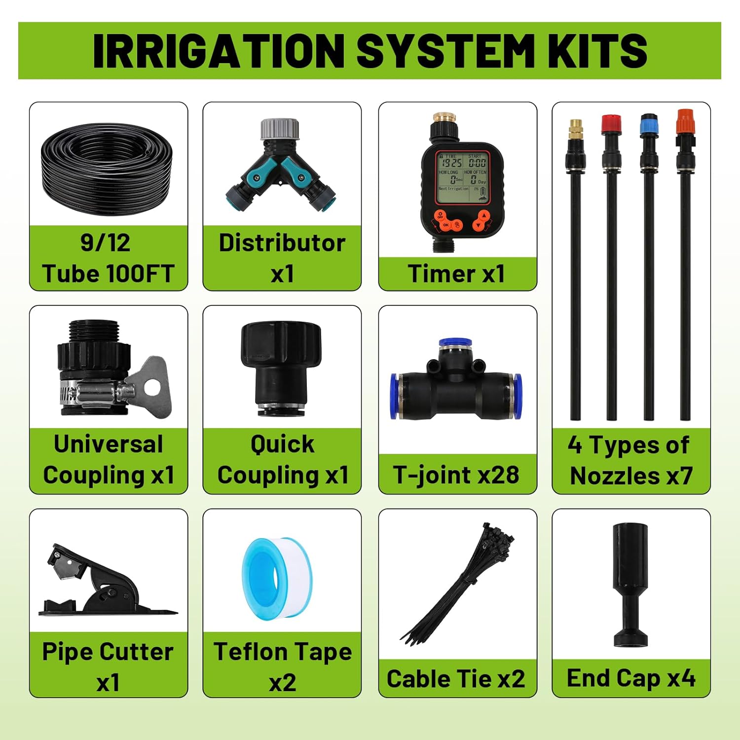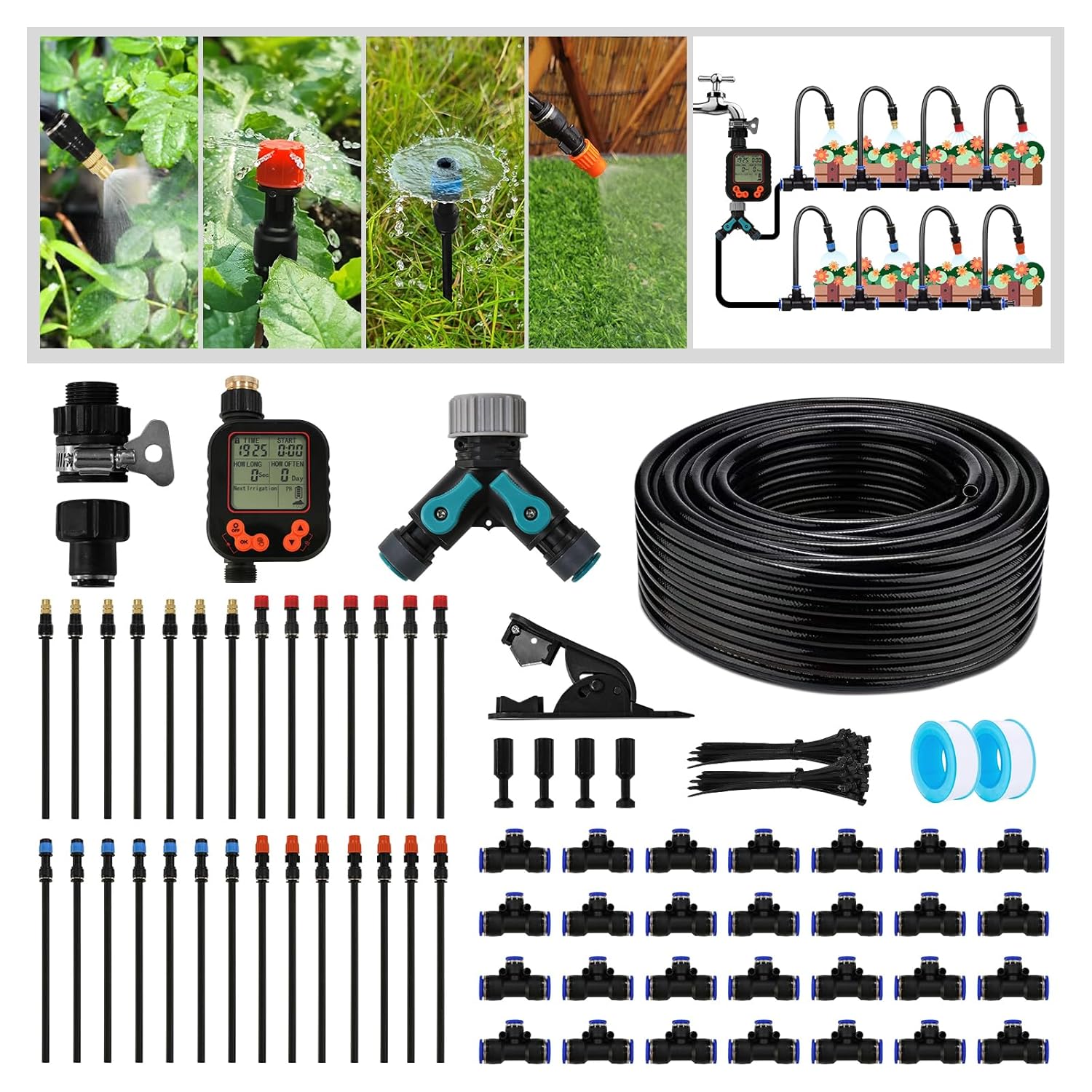 - Durable Black Water Pipe, Long-lasting and Efficient: Our garden watering system is equipped with a 100-foot long, sturdy and durable black water pipe, specifically designed for outdoor use. This water pipe is made of advanced anti-aging materials and has excellent anti-oxidation properties. It can effectively withstand high temperatures and extreme cold, and will not deform or break even in harsh environments. Whether it is for irrigating a large lawn or carefully tending to flower plantings, this durable water pipe can ensure a reliable water flow supply to meet all your drip irrigation needs.