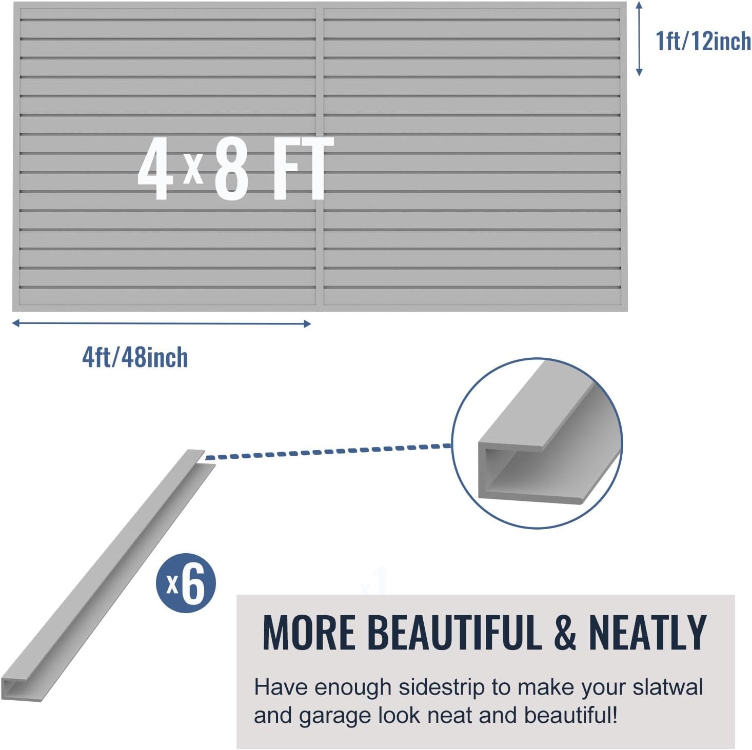 Slatwall Panel Garage Organizer PVC Slatwall Heavy Duty Wall Mounted Rack, Interlocking Slat Wall Panels for Tool Organization Peg Board(Grey 4 x 8 ft)