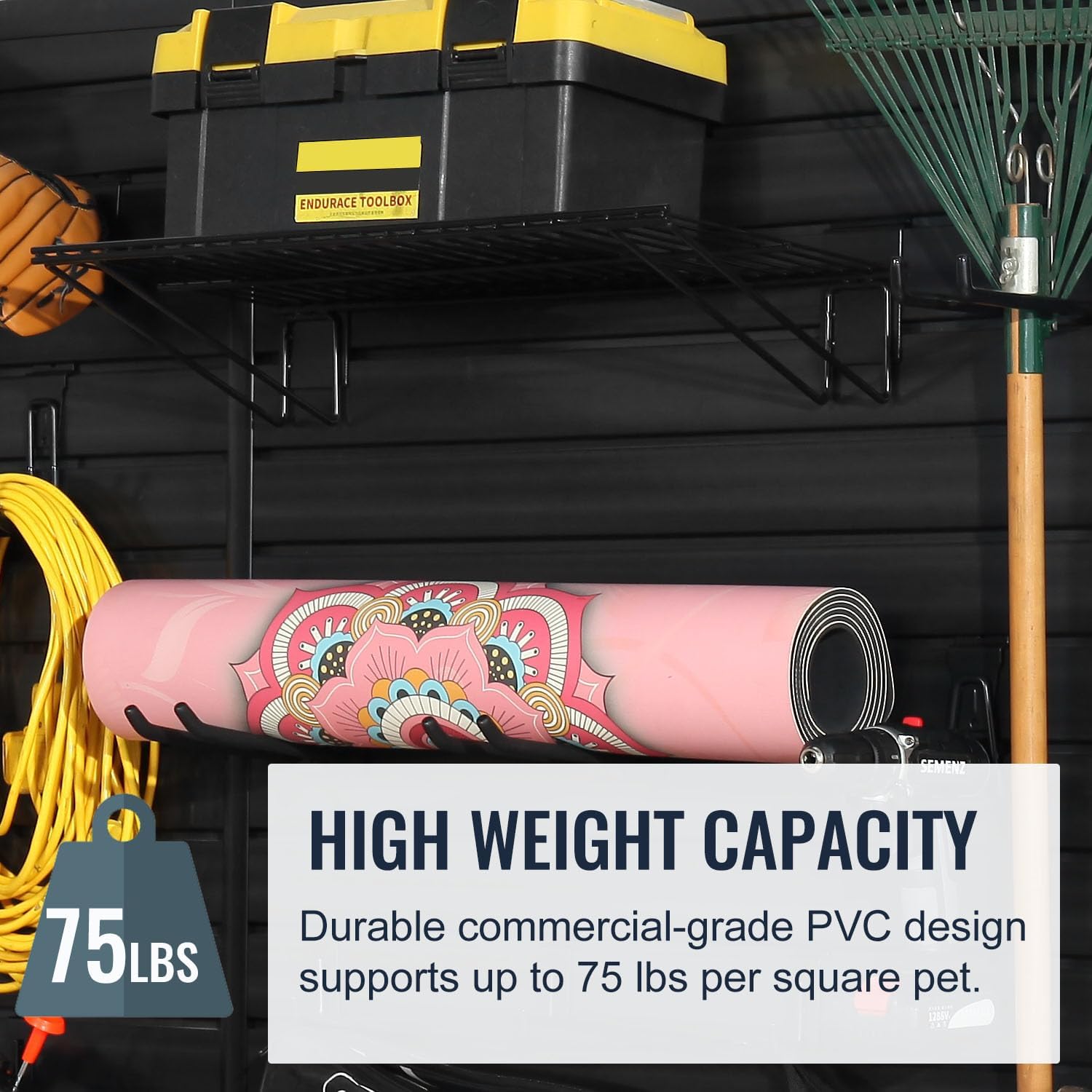 - MAXIMIZE SPACE USAGE: Transform your garage into a sleek, organized haven with our PVC slat wall panel. Efficiently utilize vertical space, creating a clutter-free environment that optimizes every inch.