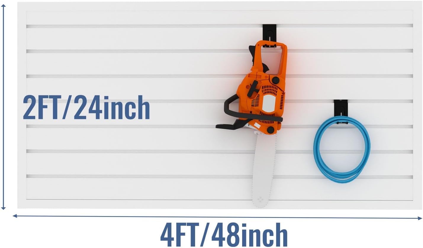 Slatwall Panel Garage Organizer PVC Slatwall Heavy Duty Wall Mounted Rack, Interlocking Slat Wall Panels for Tool Organization Peg Board(White 4 x 2 ft)