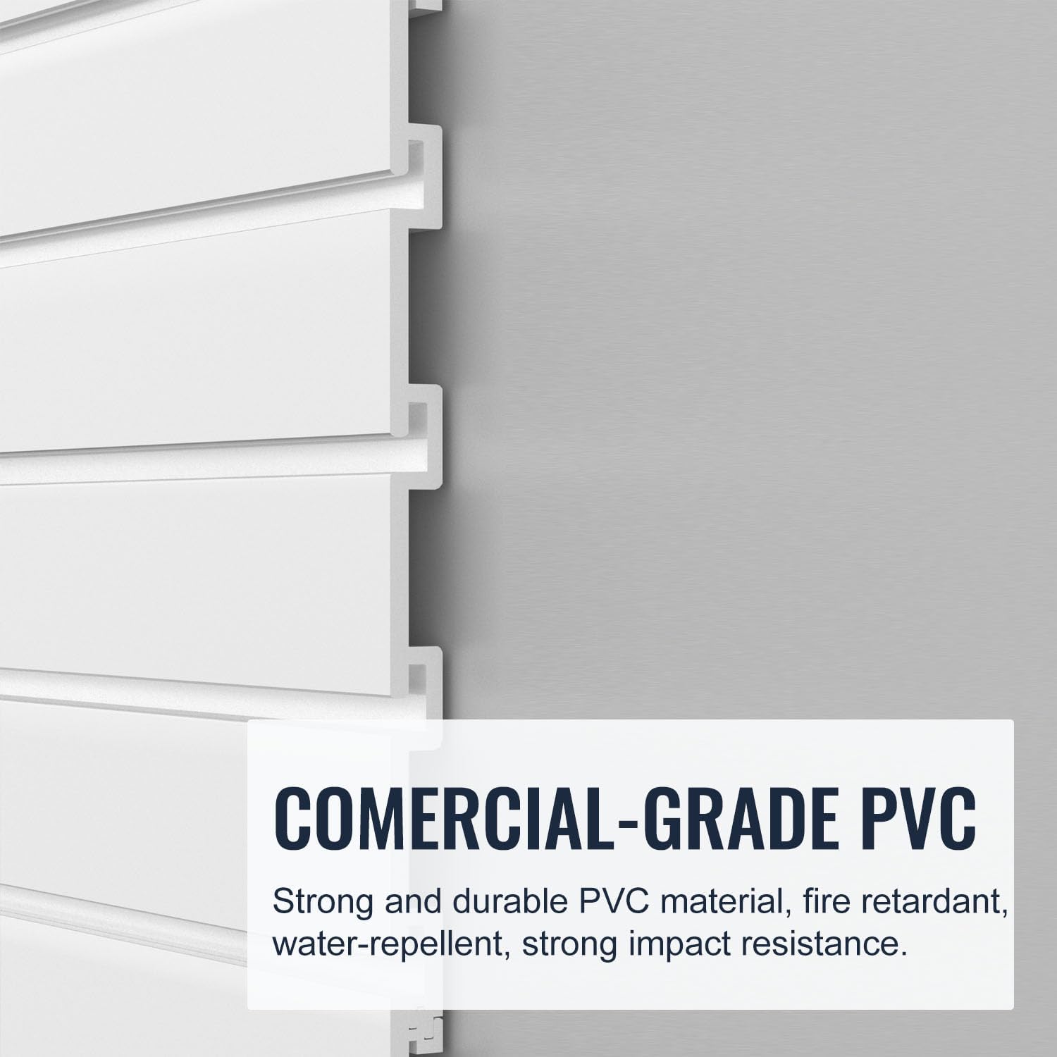 - MAXIMIZE SPACE USAGE: Transform your garage into a sleek, organized haven with our PVC slat wall panel. Efficiently utilize vertical space, creating a clutter-free environment that optimizes every inch.