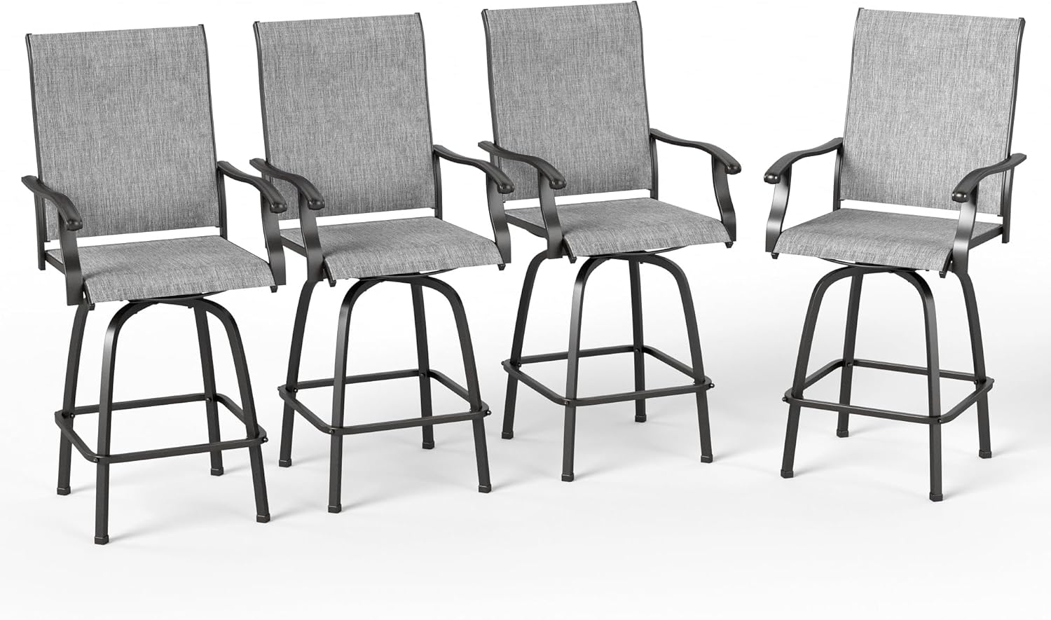 PHI VILLA Outdoor Swivel Patio Bar Stools Set of 4, 30 Inch Bar Height Tall Patio Chairs with Back & Armrest, Durable Textilene Fabric in Grey for Deck Lawn Garden