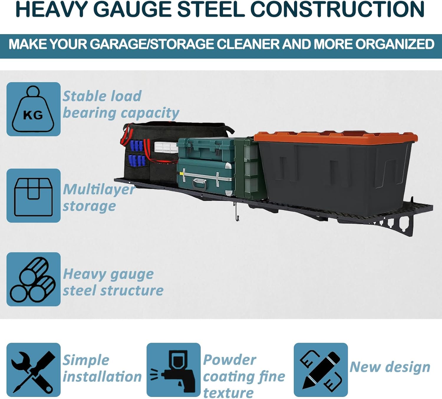 - Garage Shelf Tough Coating Defy Grease & Humidity:Rust-resistant powder coating withstands garage grease, road salt, and humid climates.Spill motor oil or antifreeze? Wipe clean instantly no stains, no corrosion, built for harsh garage environments.