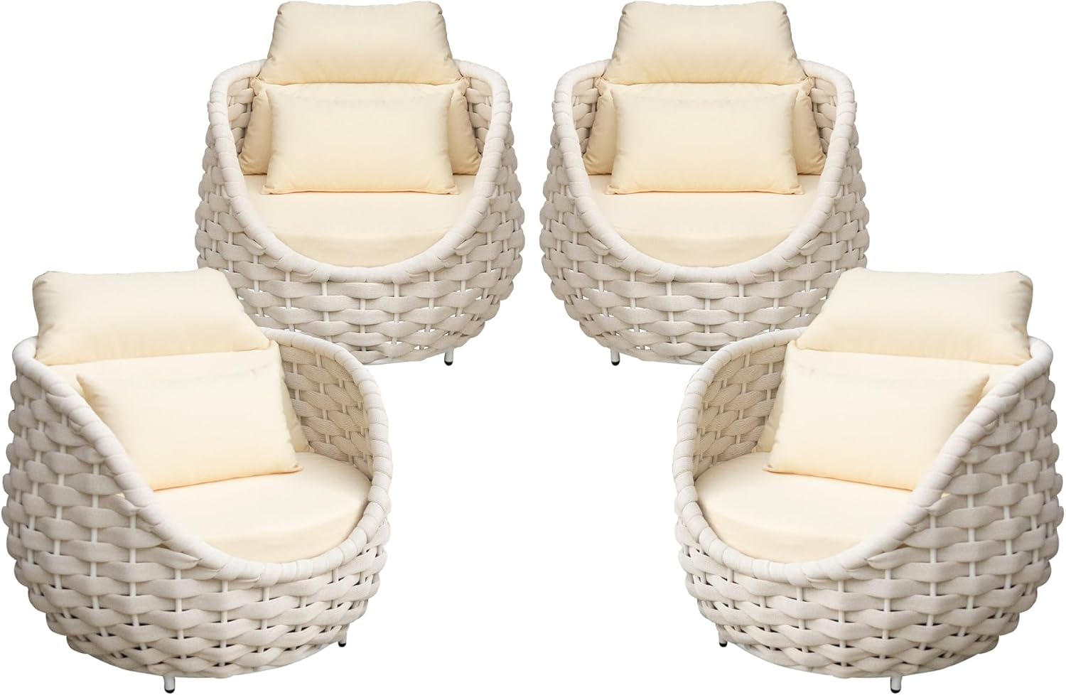 TWT 4 Pieces Patio Sofas, All-Weather Olefin Rope Balcony Furniture with Cushions & Pillows, Patio Couch Outdoor Patio Furniture Set for Indoor, Balcony, Backyard, Deck, Poolside, Cream