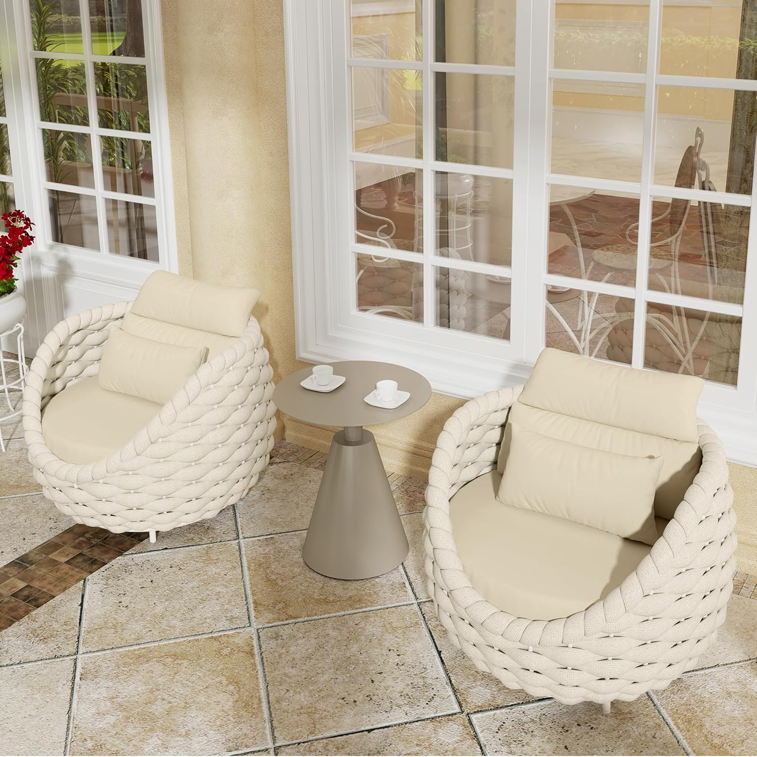 - Sturdy & Durable:TWT outdoor chairs set of 2 with high quality aluminum alloy,no rust,no deformation,hand woven polyester rope are strong enough to withstand all weather variations.Outdoor sofa cushions balance well with sturdy frame