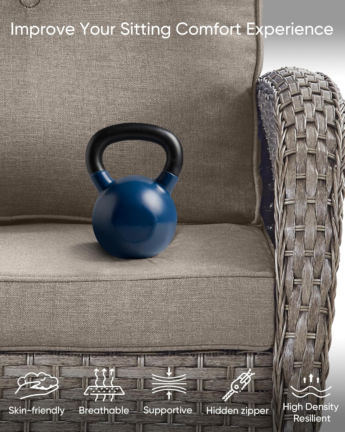 - Thick Cushions for Lasting Comfort and Support: These 4-inch thick cushions are filled with high-density resilient sponge, providing excellent support and long-lasting comfort. The wide seating design ensures plenty of space to relax, while the cushions retain their shape and bounce back after each use, never compressing. Perfect for outdoor lounging, these cushions offer both softness and durability, giving you a superior seating experience for years to come.