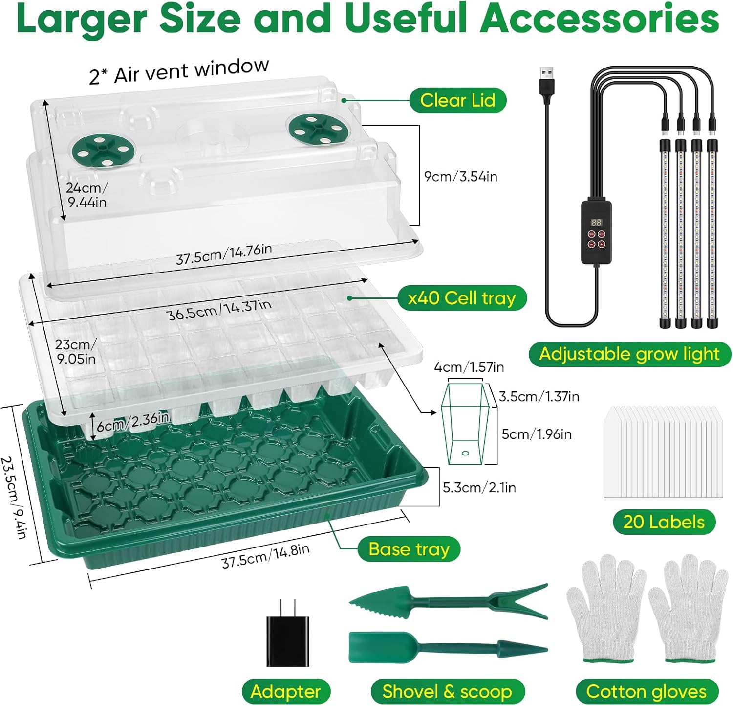 - 【Wide Applications】 The seed starter tray with grow light which is providing a great growth condition for a large variety of plants such as flowers, vegetables, fruits, tomatoes, and other plants.you can learn and get the fun of planting at home with your family.