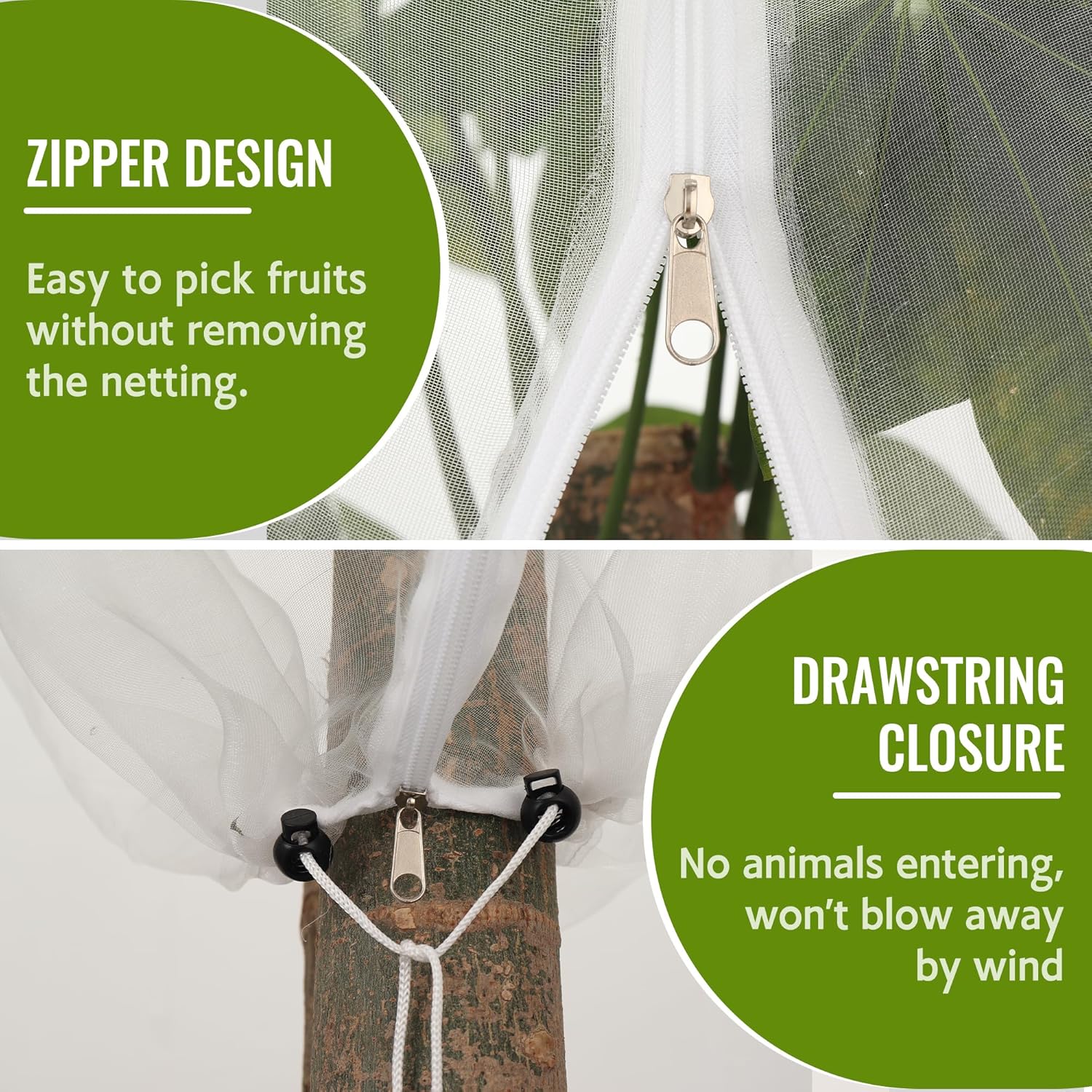 2 Pack Fruit Tree Netting Bags with Zipper and Drawstring, 6 x 6ft Ultra Fine Mesh Garden Netting Plant Cover, Bird Netting for Blueberry Bushes, Fruit Trees, Flowers (White, 6 x 6 ft)