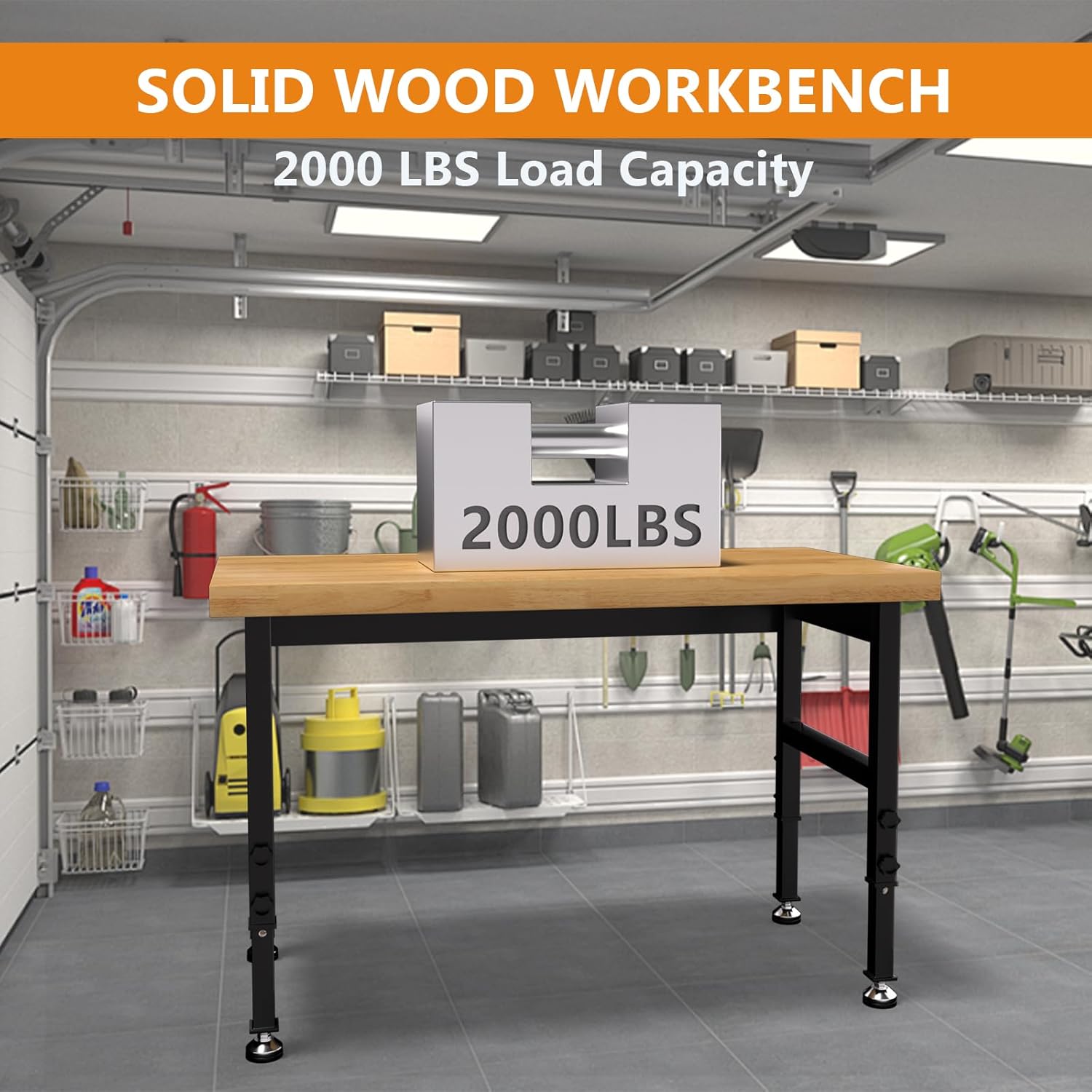 Solid Wood 48" Work Bench, Adjustable Height Workbench, Heavy-Duty Work Table, 2000 LBS Load Capacity Workstation for Garage, Workshop, Office, Home(48" X 24")